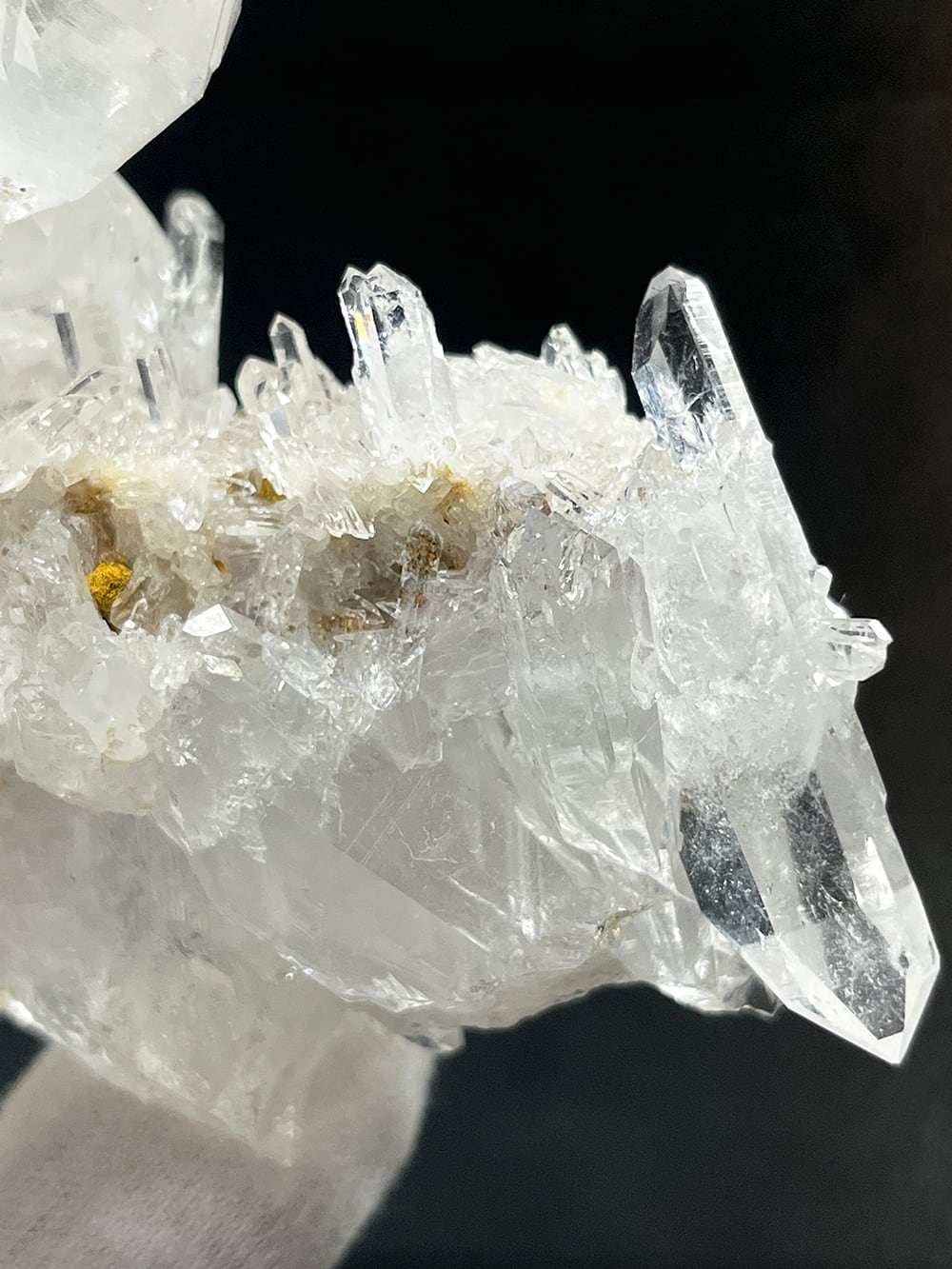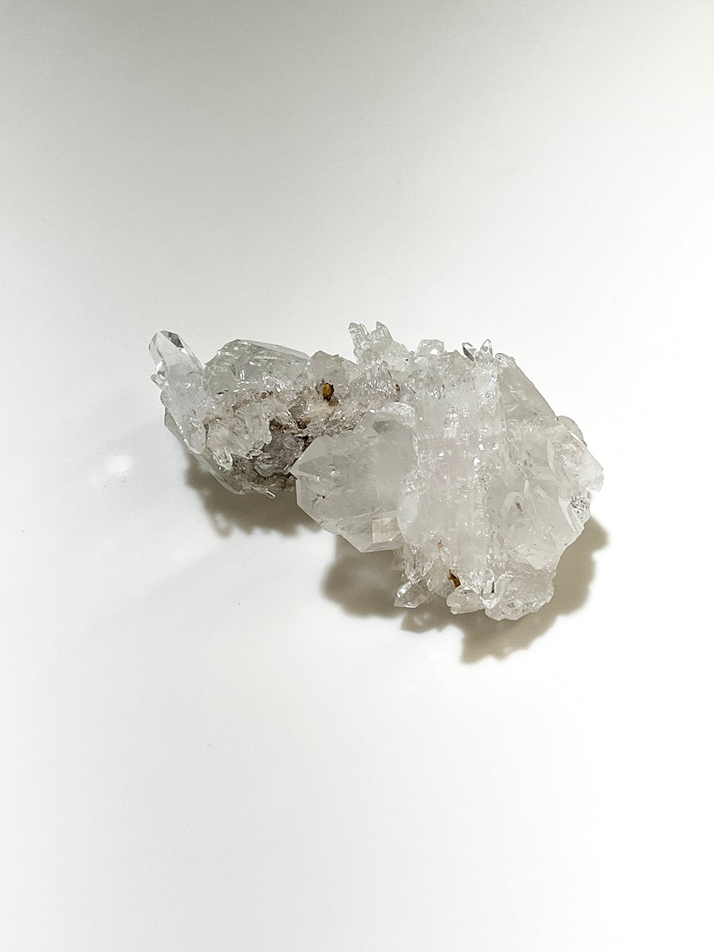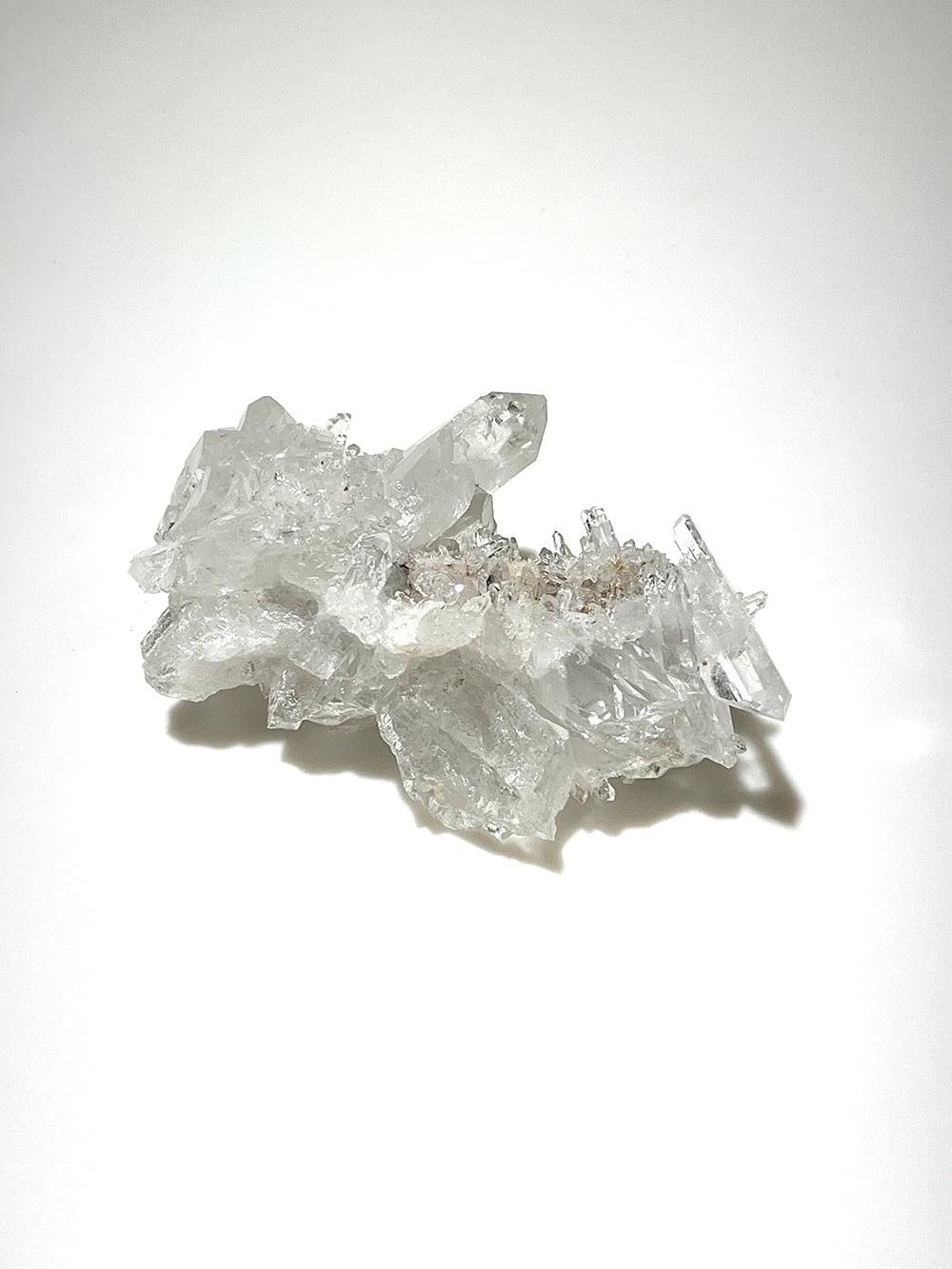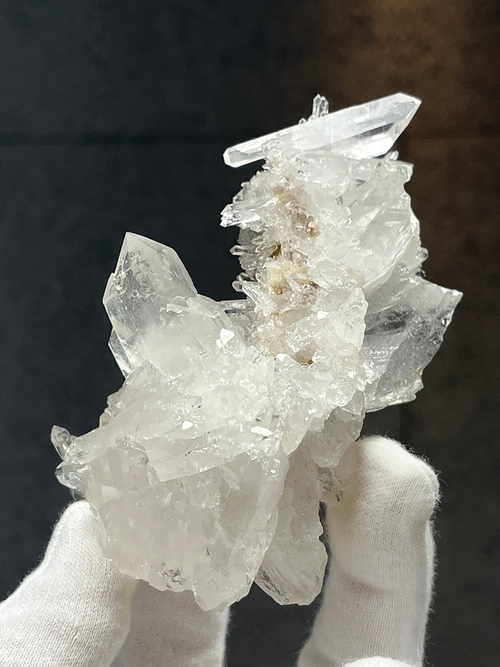 綺麗なクラスターのところどころにリモナイトの付着も見られ、良いアクセントカラーになっています。手にとって色々な角度から眺めてほしい、とても美しいクラスターです。