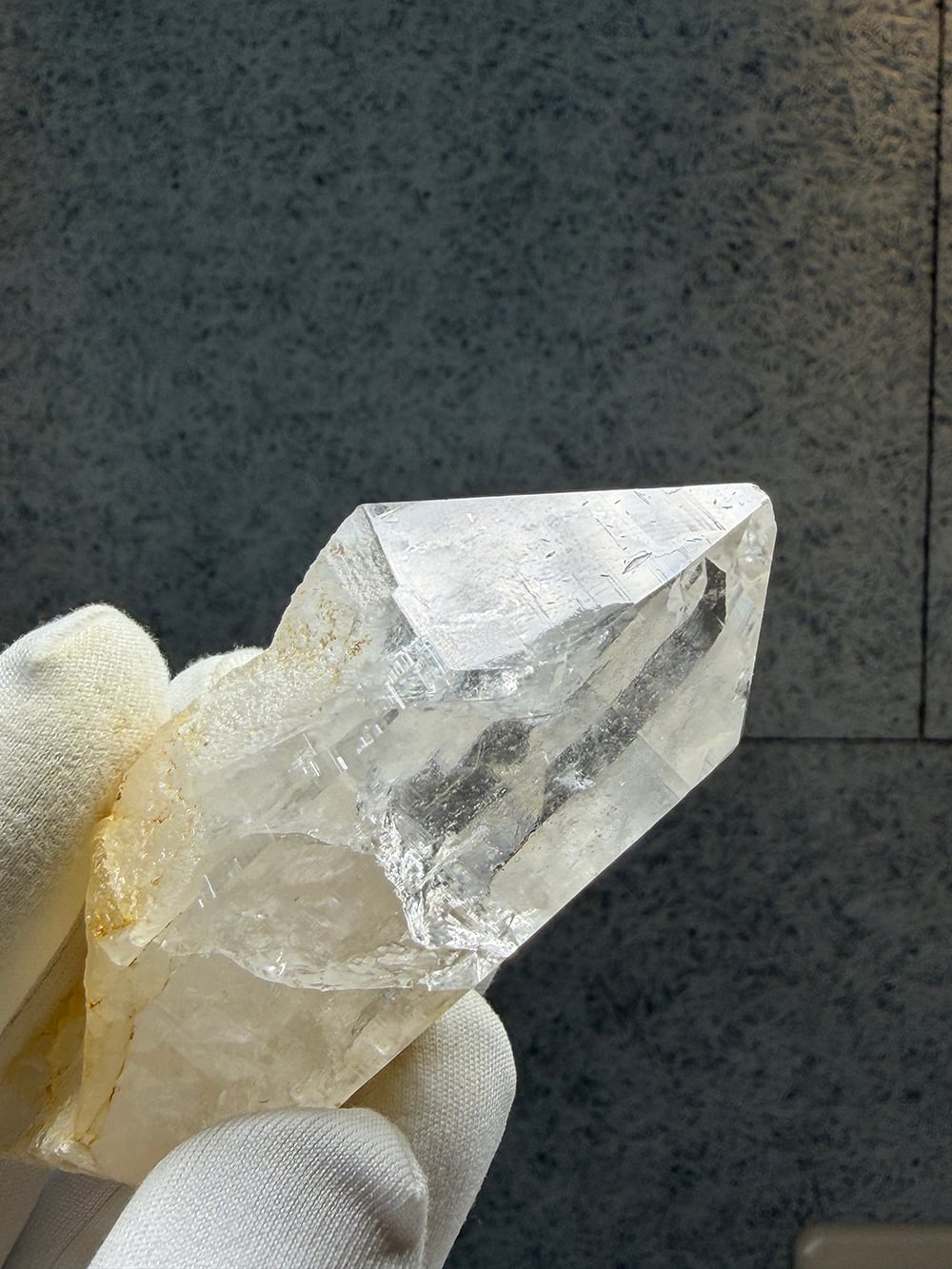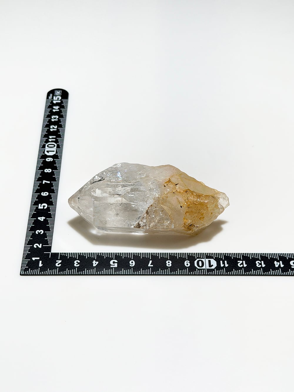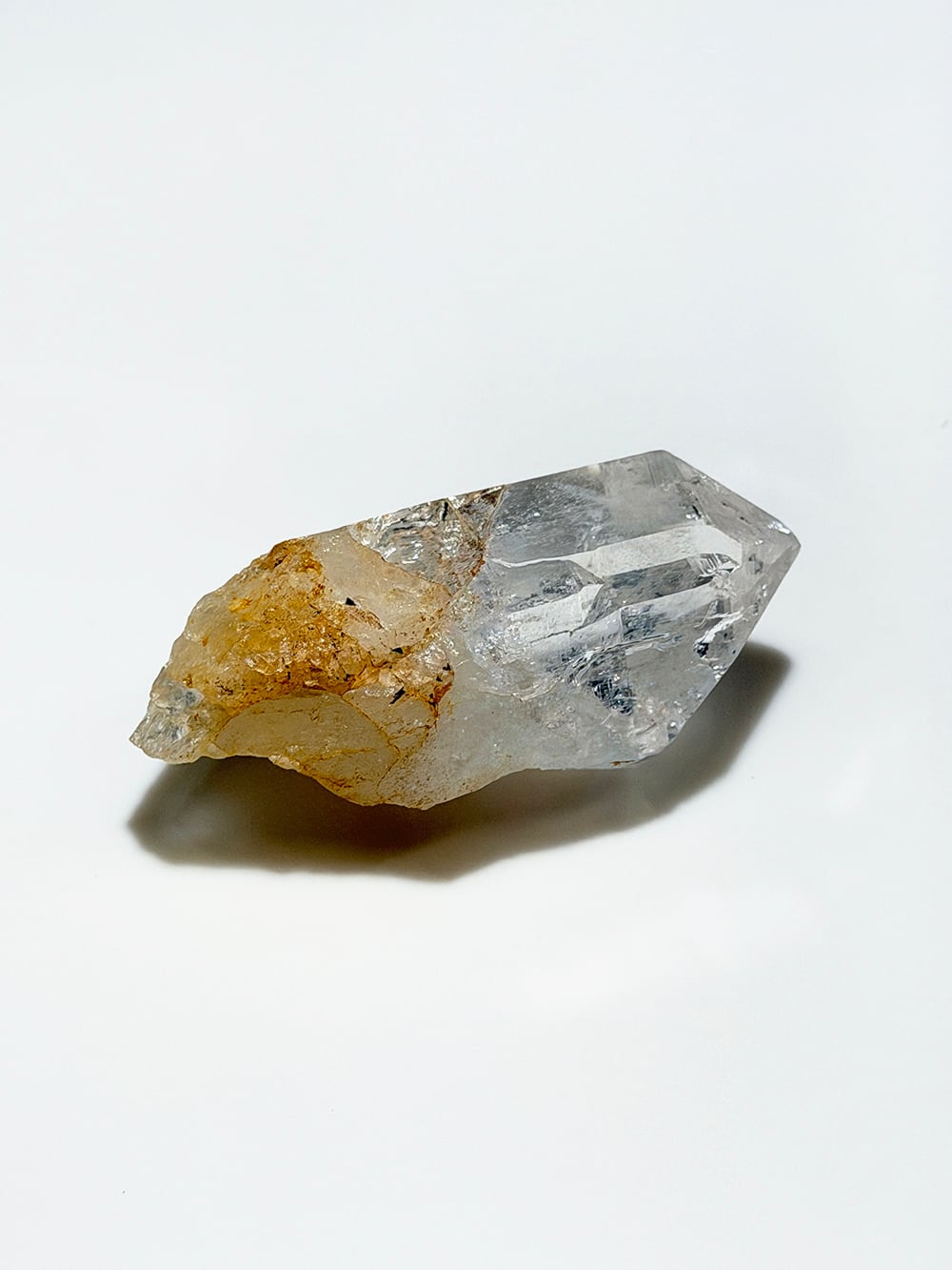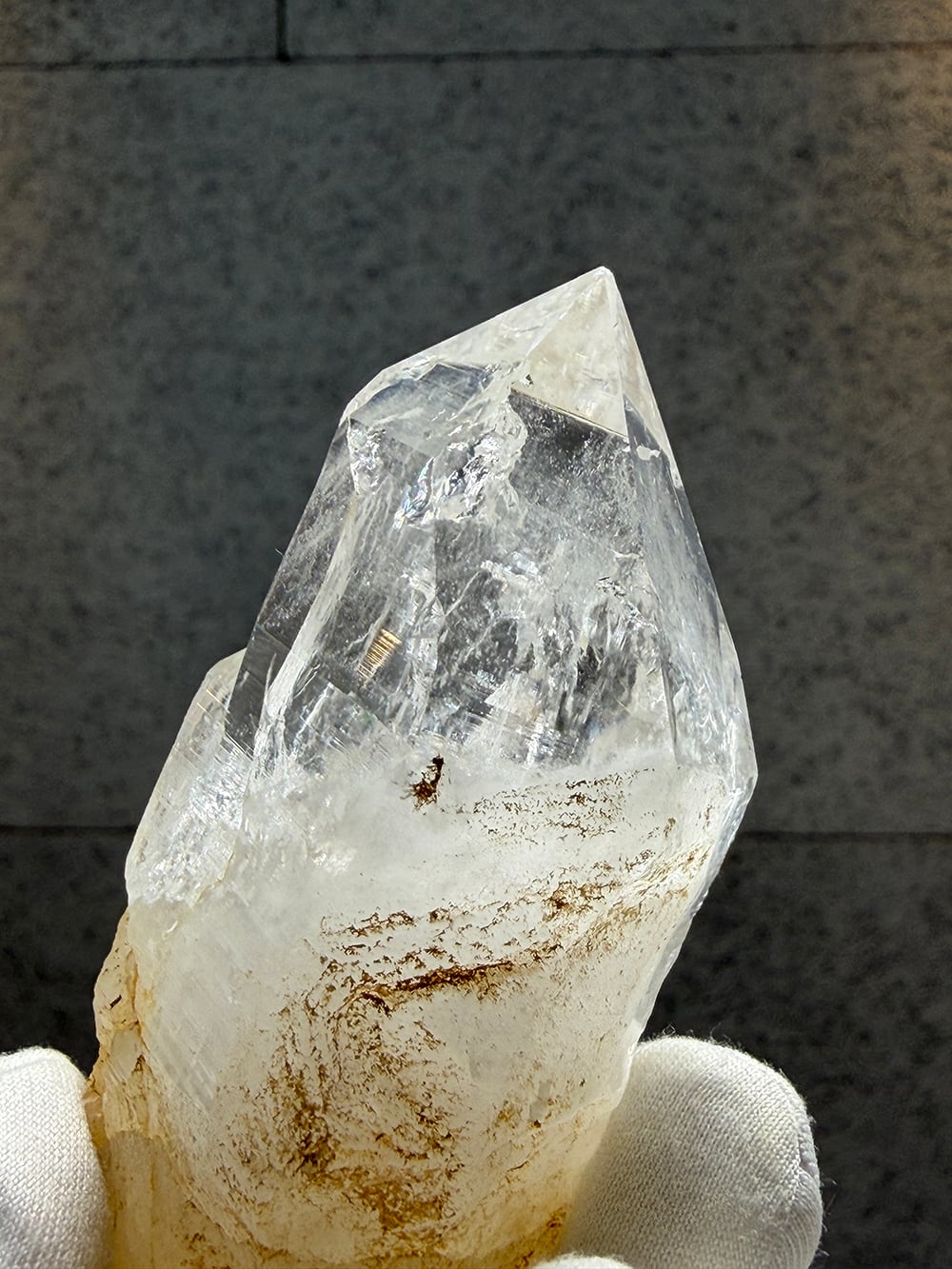 とても美しい輝きのポイントクォーツ。透明度もかなり高く、光を当てるとさらに美しさを増します。中にも多くの虹を見ることができ、手のひらにちょうど収まるサイズも◎な一点です。