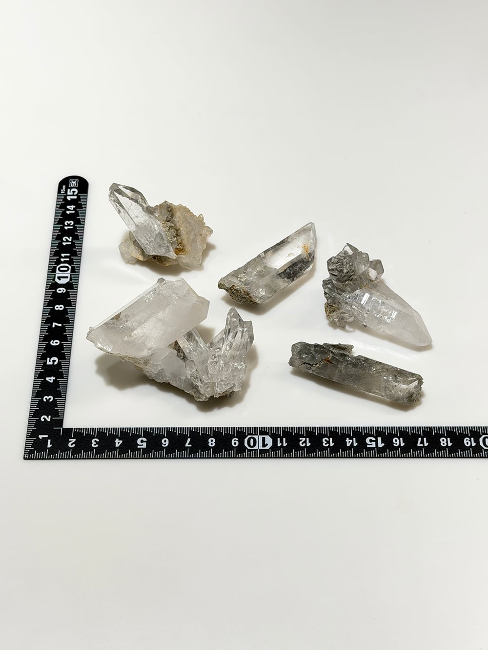 少しクールでスタイリッシュさのあるグレーのクローライトを集めたアソート。クリアクォーツとグレーのクローライトの組み合わせはとても相性が良いと思います。モダンインテリアやモノトーンのお部屋にも美しいアクセントになります。個人的にイチオシな5点セット。
