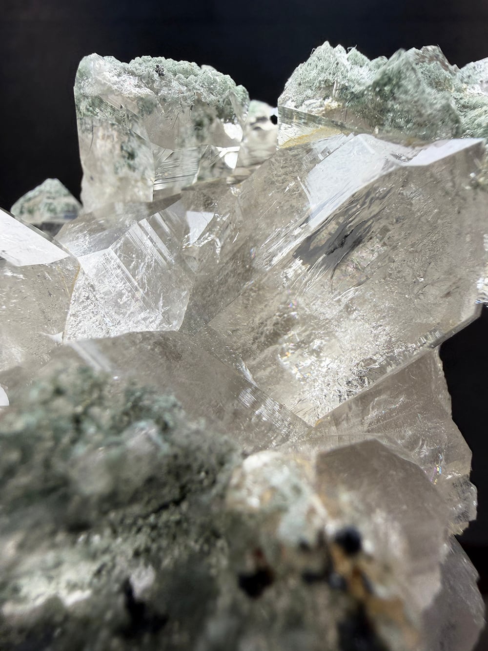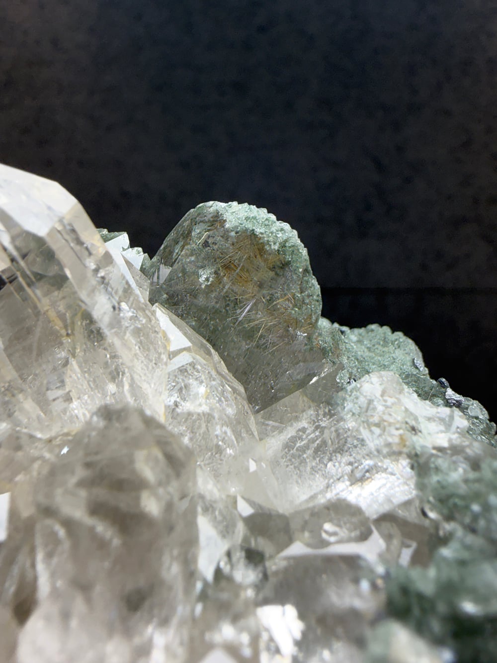 ルチル、クローライト、アナテース、マニハールの魅力と特徴を詰め込んだような、とても大きな美しいクラスター。座りもよくどの角度から見ても景色が◎の素晴らしい一点です。