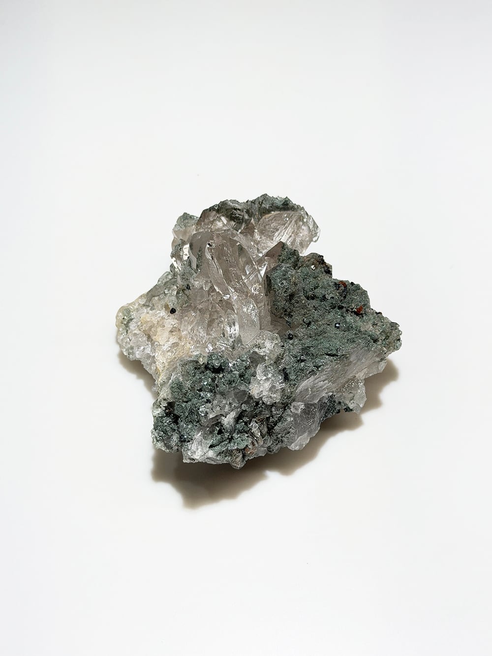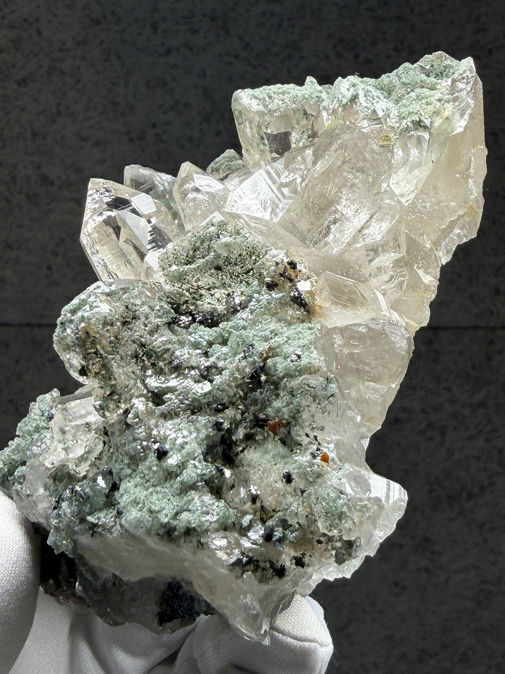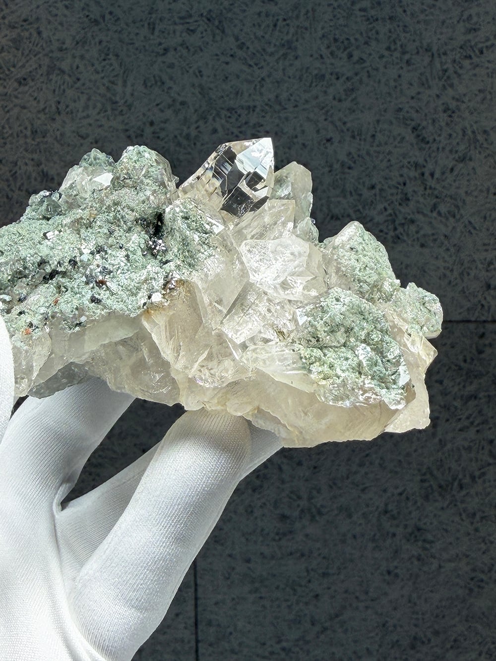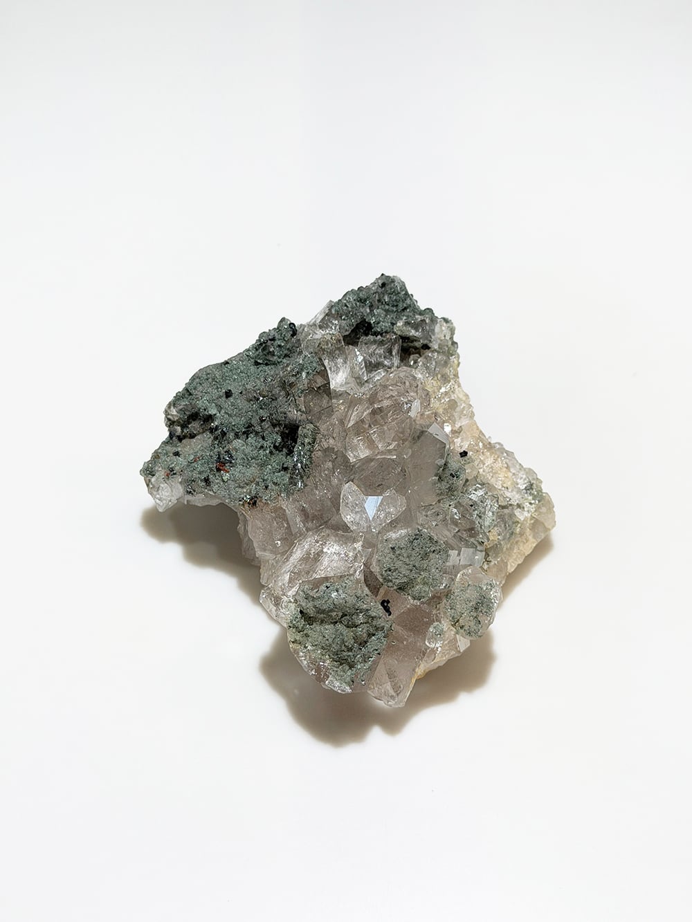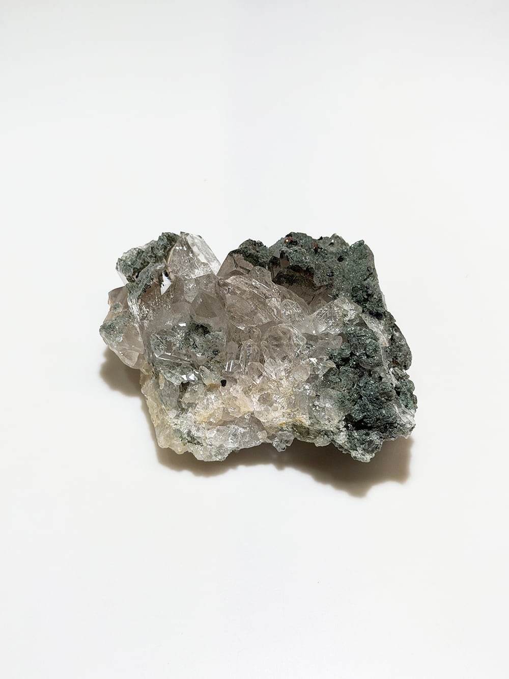 インドのガルサ渓谷、標高5400mのクル地方の奥にあるマニハール。産出されるヒマラヤ水晶は、水晶の中でもトップクラスの品質とされており、透明度と光沢が特に美しいことでも知られます。特徴として共生しているクローライト(緑泥石)は、このマニハールではモスグリーンの色をしており、透明度と相まってより美しさを増しています。2022年頃にマニハールでの採掘が政府の厳しい監視下に置かれるようになり、流通量が激減しているそうです。価格の高騰も続いており、採掘が再開されるかも不明で、今後は入手困難になる可能性も高くなっております。
