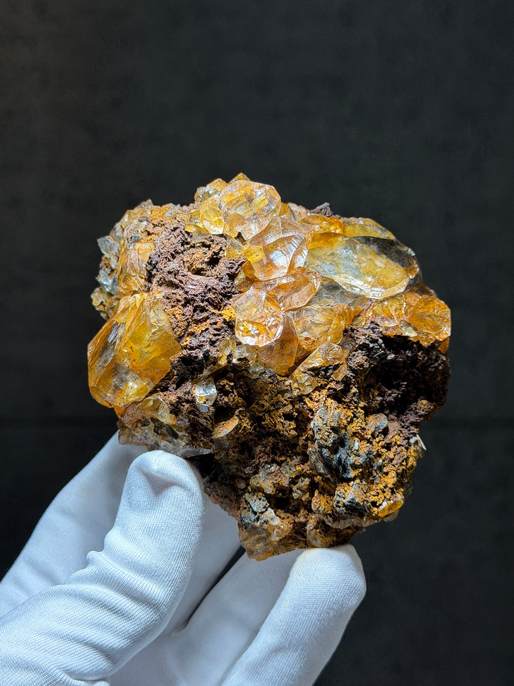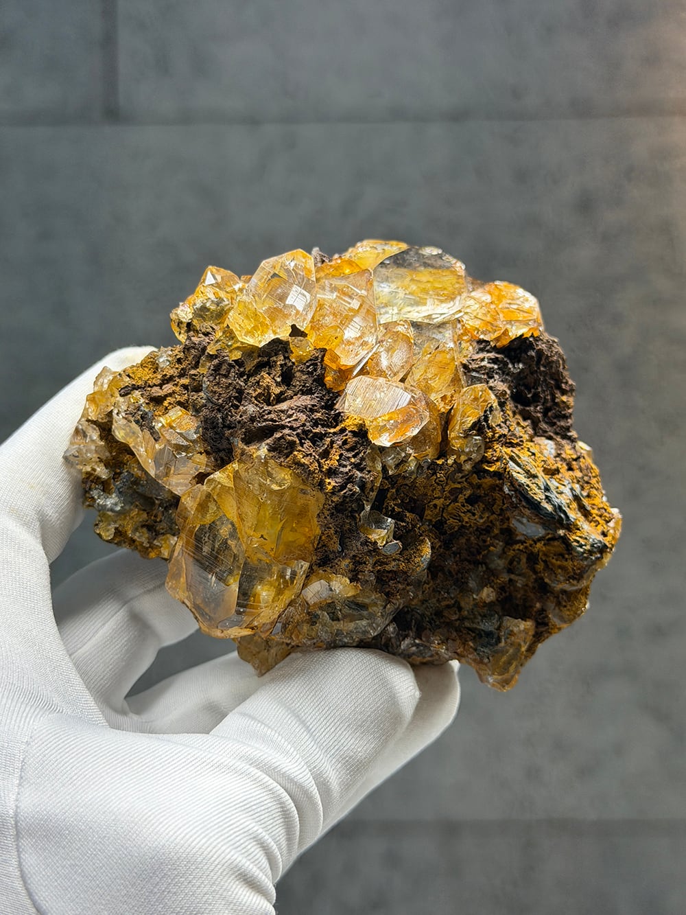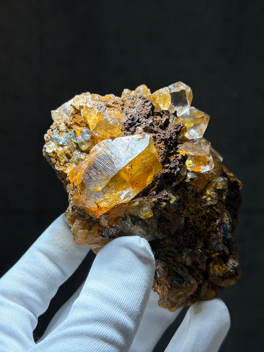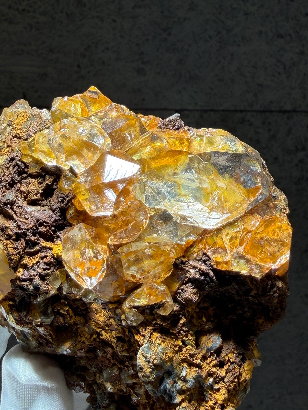 リモナイト(褐鉄鉱)を表面と水晶の中に閉じ込めたクォーツ。そのリモナイトを纏った独特な雰囲気と、クォーツの透明感と照りのコントラストが美しい鉱物です。細かな表面のテクスチャーとクォーツに内包されたリモナイトを覗き込むと、まるで別世界に居るかのような景色を眺めることができます。