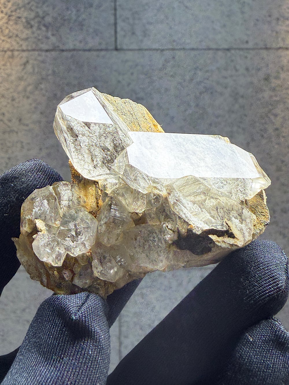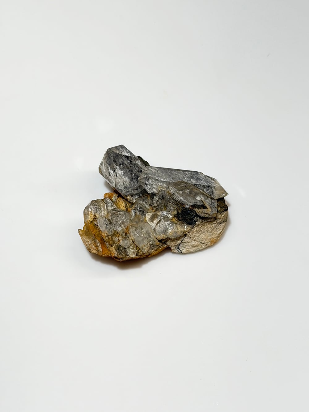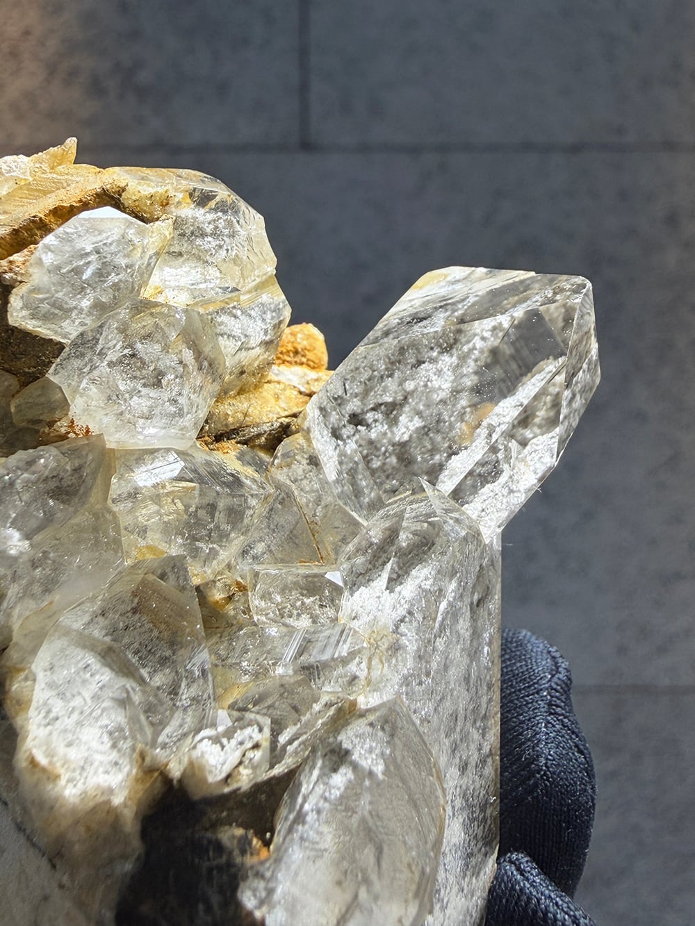 内包されているガーデンがとても美しいクラスター。ライトグレーの立体的な景色に目を奪われます。クォーツの透明度も素晴らしく、この一点を飾るだけでとても絵になります。個人的にもかなりおすすめのクォーツです。Udasu valleyという地図には記載のない谷から届いた鉱物です。