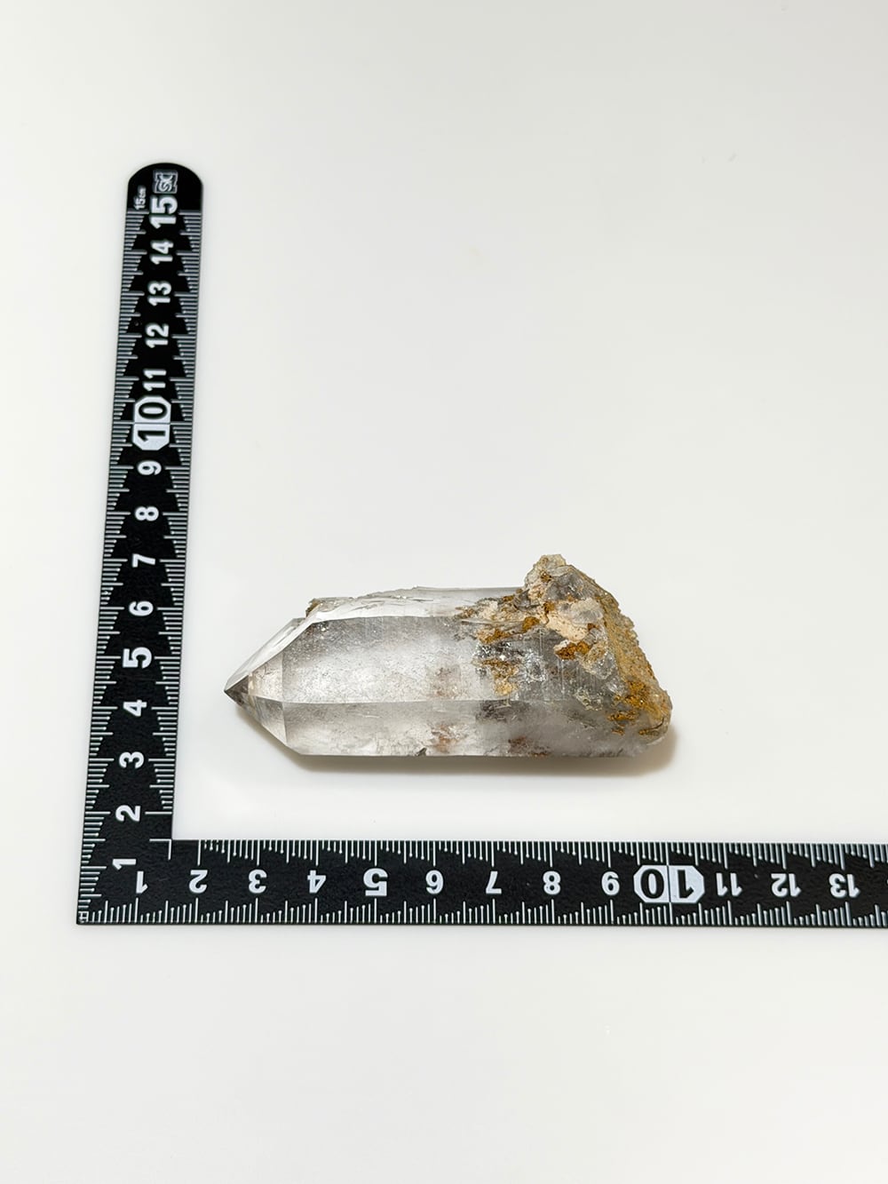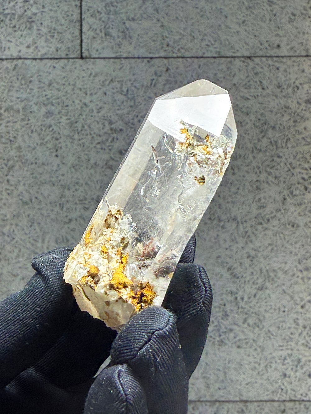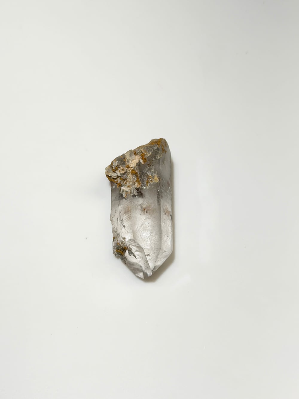シンプルながら、美しいクォーツにガーデンや虹の要素もギュッと凝縮したポイント。透明度や照りも素晴らしく、手に持って眺めるのにちょうど良いサイズなのも◎です。グレイッシュなマイカとサンドかリモナイトのオレンジカラーの色合いもとても素晴らしい一点です。