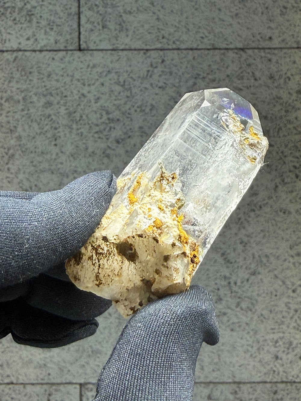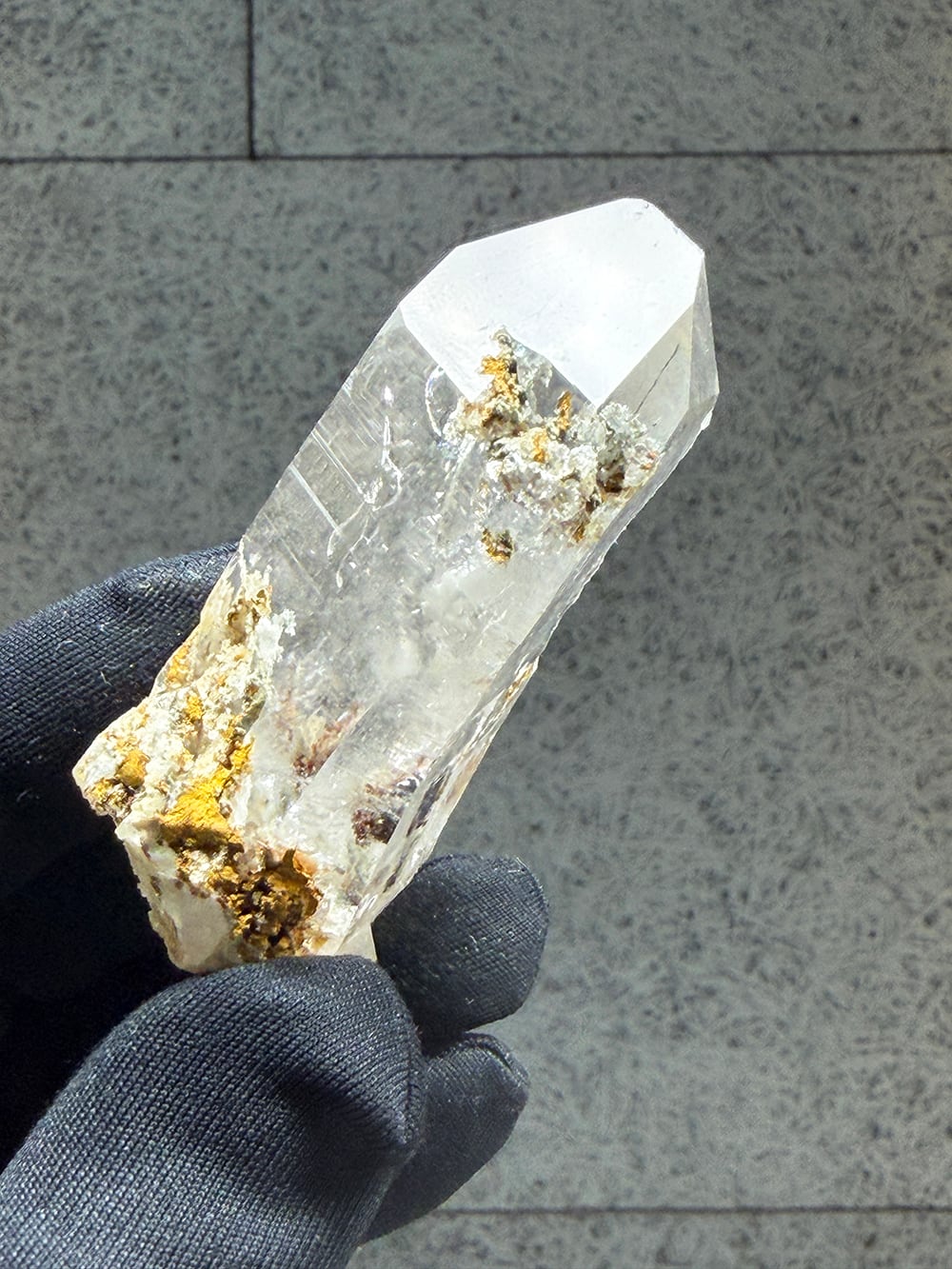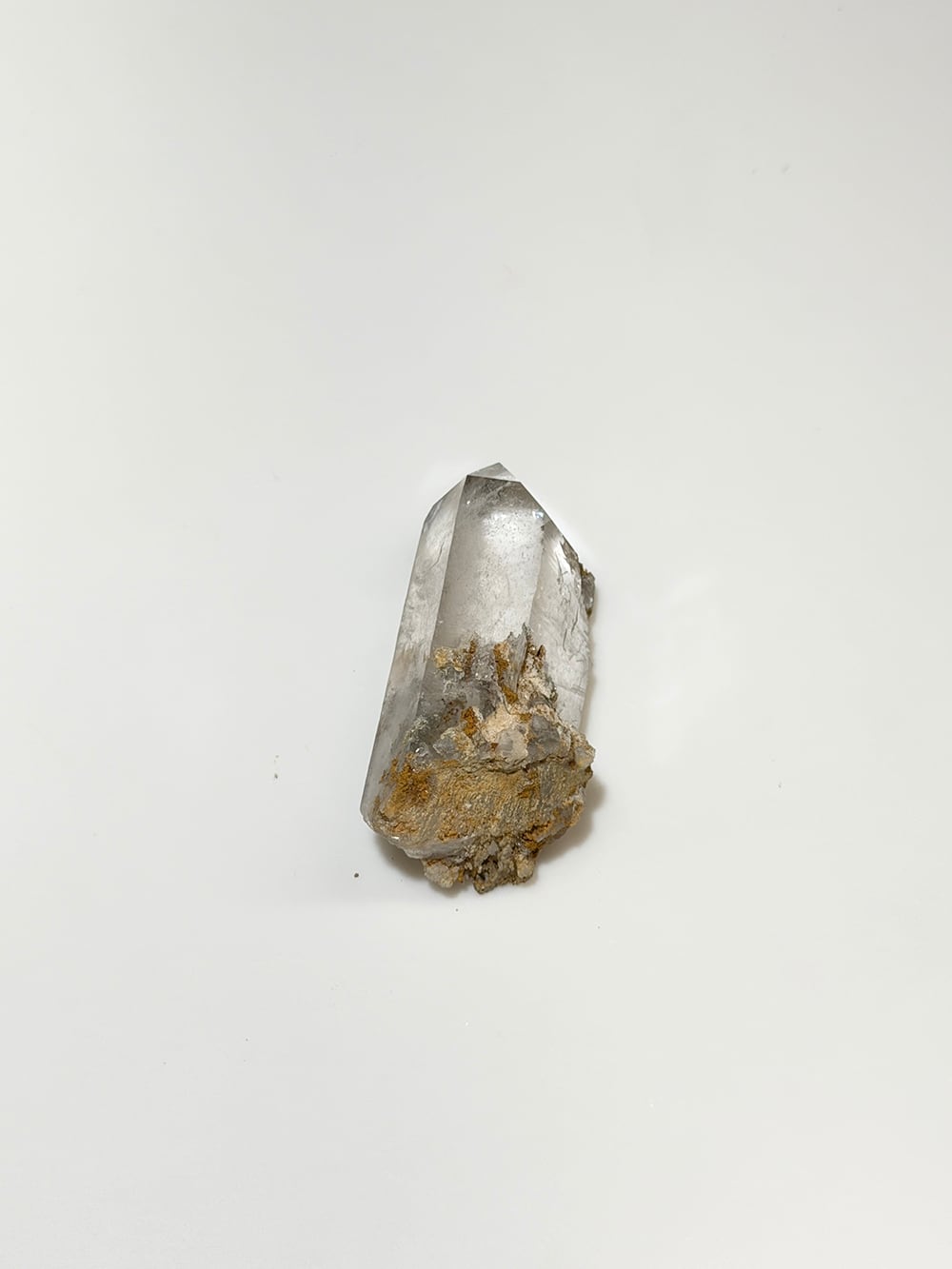 シンプルながら、美しいクォーツにガーデンや虹の要素もギュッと凝縮したポイント。透明度や照りも素晴らしく、手に持って眺めるのにちょうど良いサイズなのも◎です。グレイッシュなマイカとサンドかリモナイトのオレンジカラーの色合いもとても素晴らしい一点です。