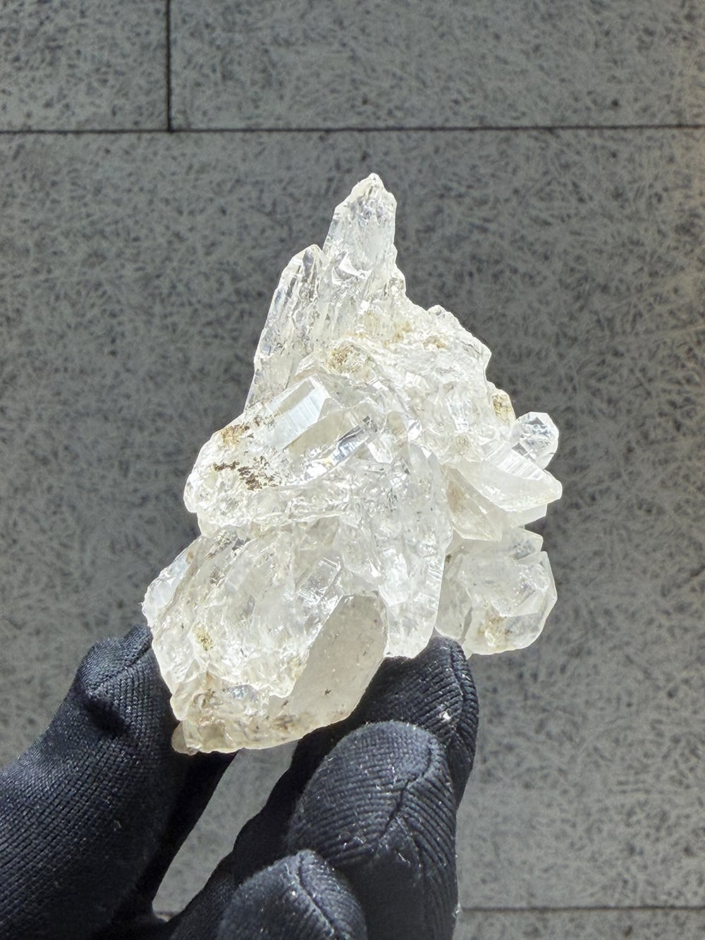 とても煌びやかなクォーツクラスター。小さいクォーツ達ですが、その透明度と照りは素晴らしいクオリティです。透明度が高いのに存在感がある、インテリアのアクセントとしてもとてもポイントの高いクラスターです。