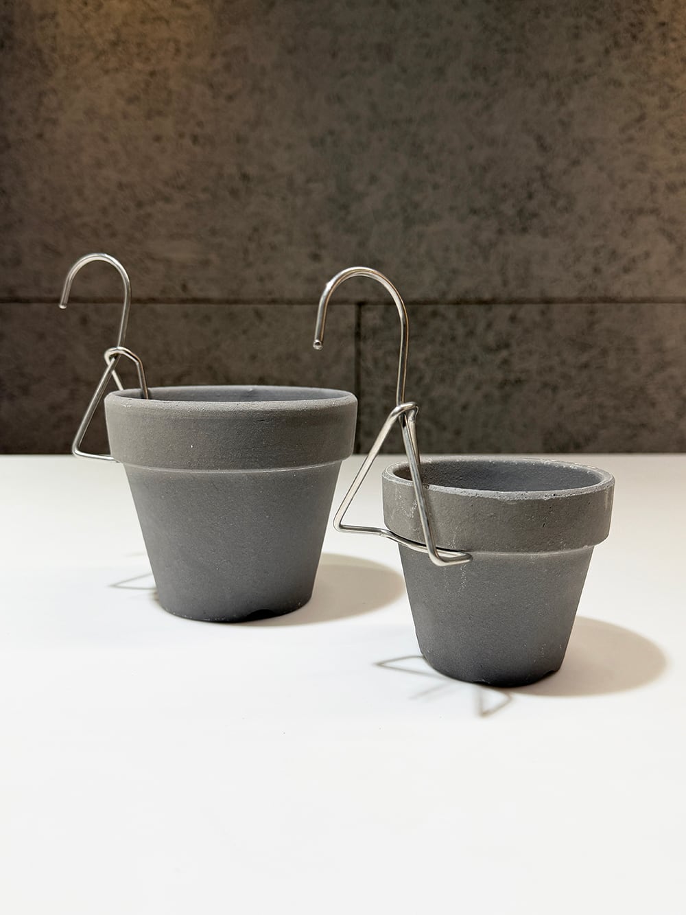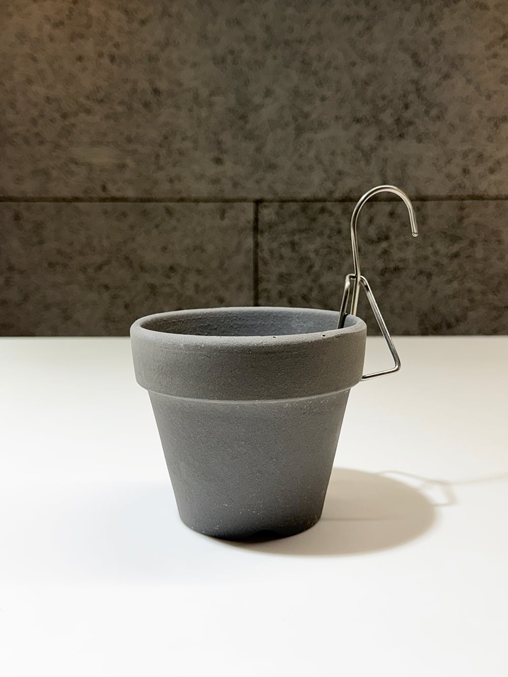 数量限定になりますが、このグレーの素焼き鉢とハンギングフックのセットを販売いたします。蘭やホヤ、リプサリスなどに特にオススメのセットです。乾湿の繰り返しが必要な植物に最適です。