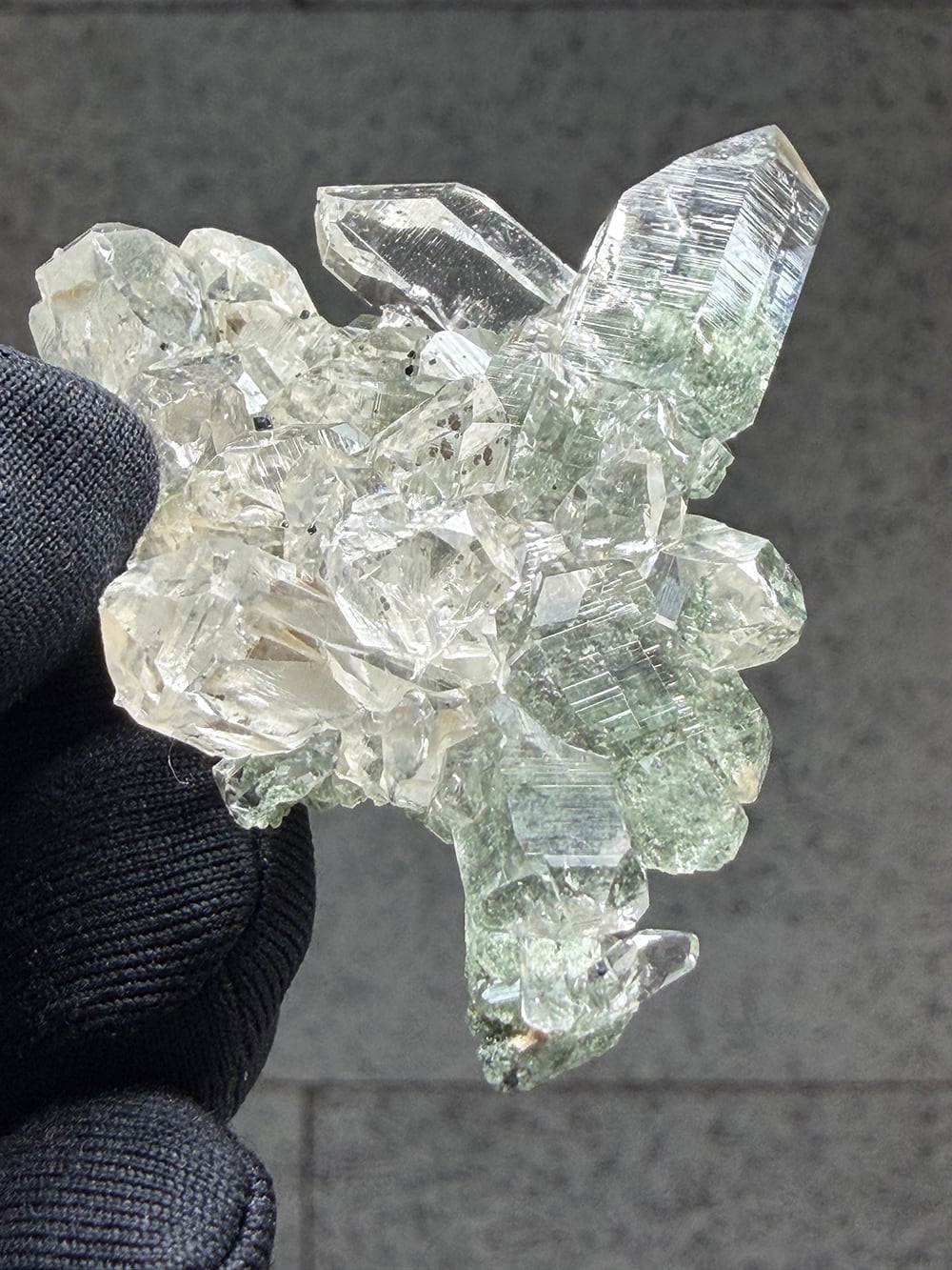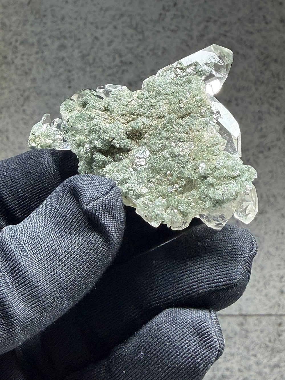インドのガルサ渓谷、標高5400mのクル地方の奥にあるマニハール。産出されるヒマラヤ水晶は、水晶の中でもトップクラスの品質とされており、透明度と光沢が特に美しいことでも知られます。特徴として共生しているクローライト(緑泥石)は、このマニハールではモスグリーンの色をしており、透明度と相まってより美しさを増しています。2022年頃にマニハールでの採掘が政府の厳しい監視下に置かれるようになり、流通量が激減しているそうです。価格の高騰も続いており、採掘が再開されるかも不明で、今後は入手困難になる可能性も高くなっております。