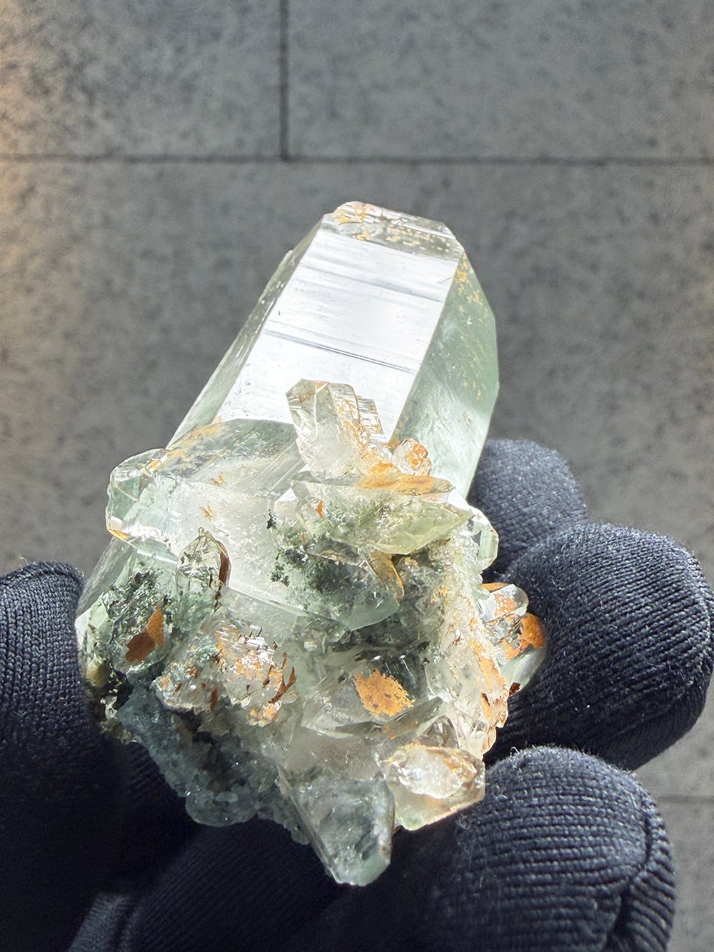 インドのガルサ渓谷、標高5400mのクル地方の奥にあるマニハール。産出されるヒマラヤ水晶は、水晶の中でもトップクラスの品質とされており、透明度と光沢が特に美しいことでも知られます。特徴として共生しているクローライト(緑泥石)は、このマニハールではモスグリーンの色をしており、透明度と相まってより美しさを増しています。2022年頃にマニハールでの採掘が政府の厳しい監視下に置かれるようになり、流通量が激減しているそうです。価格の高騰も続いており、採掘が再開されるかも不明で、今後は入手困難になる可能性も高くなっております。