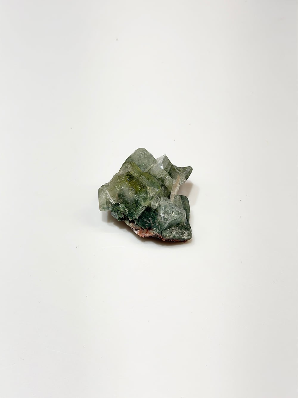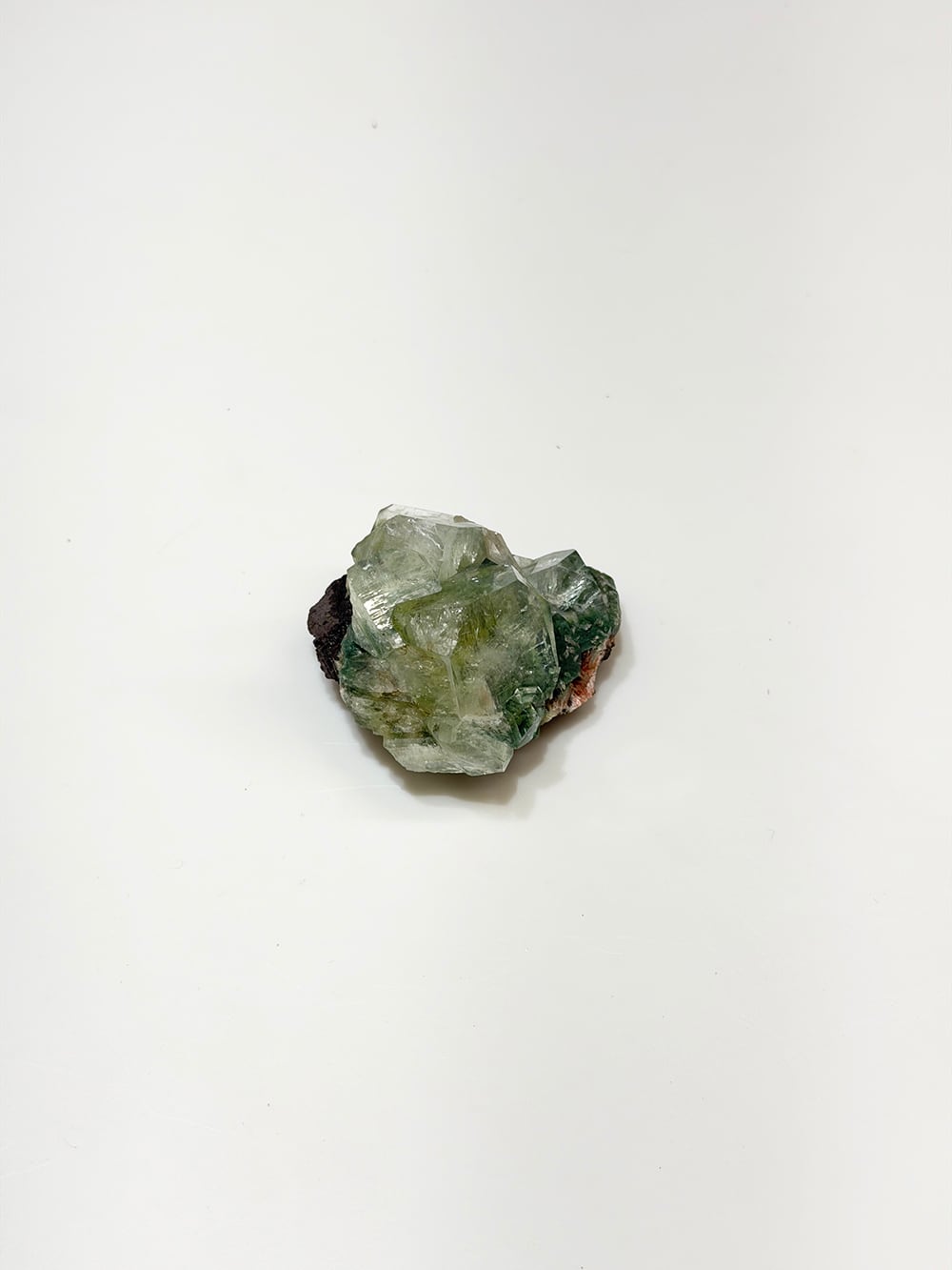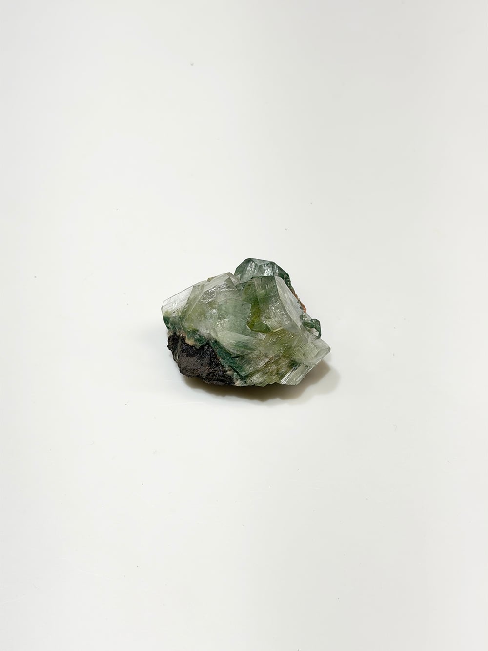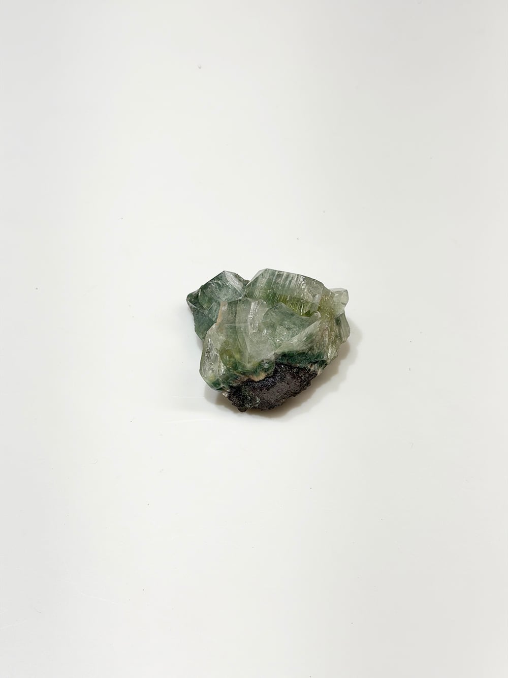 アポフィライトの中でもグリーンアポフィライトは産出量が少なく、特に希少性が高いとされています。照りや透明感も美しく、層のように重なって見える部分は特に趣深く、神秘的な魅力のある鉱物です。