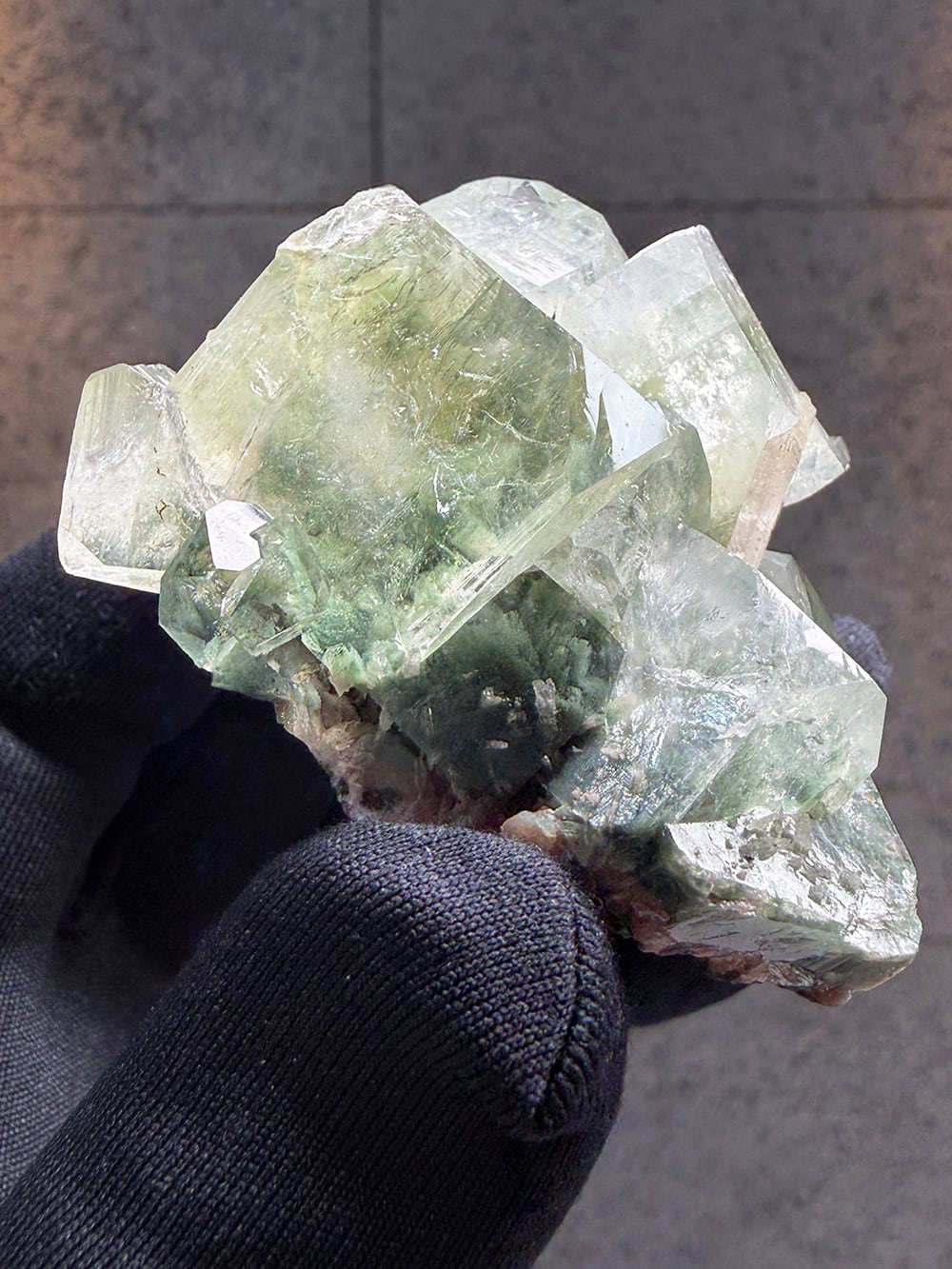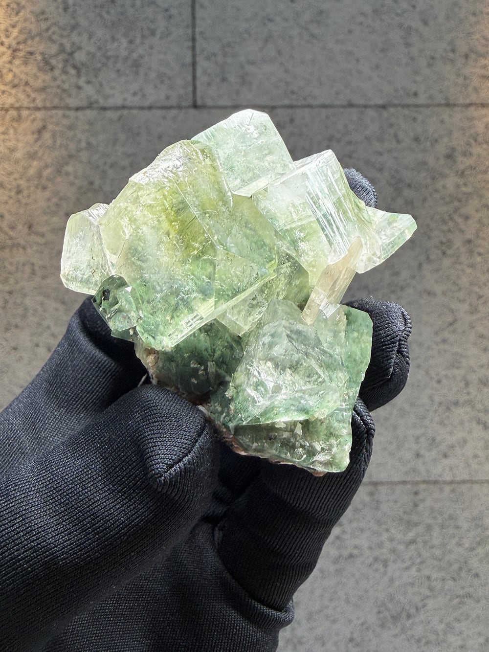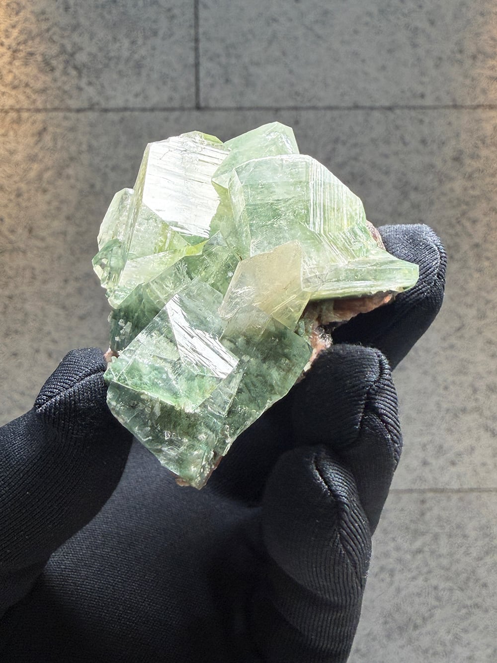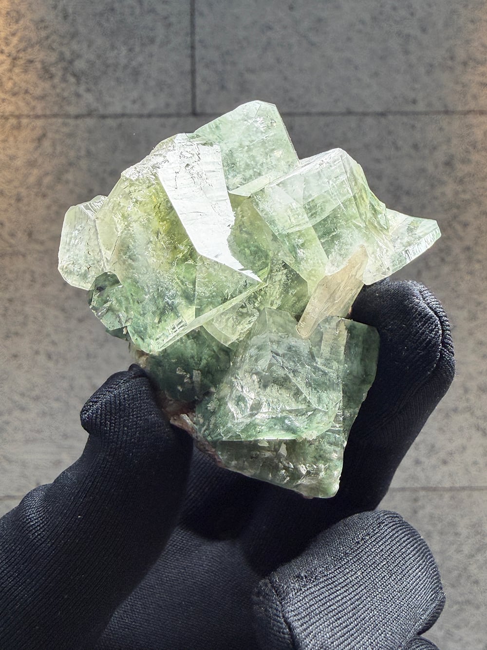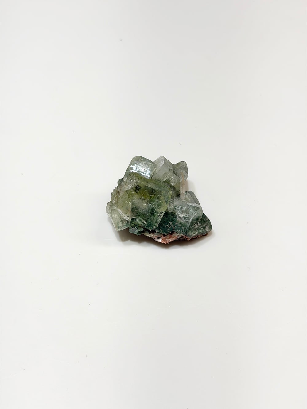 アポフィライトの中でもグリーンアポフィライトは産出量が少なく、特に希少性が高いとされています。照りや透明感も美しく、層のように重なって見える部分は特に趣深く、神秘的な魅力のある鉱物です。