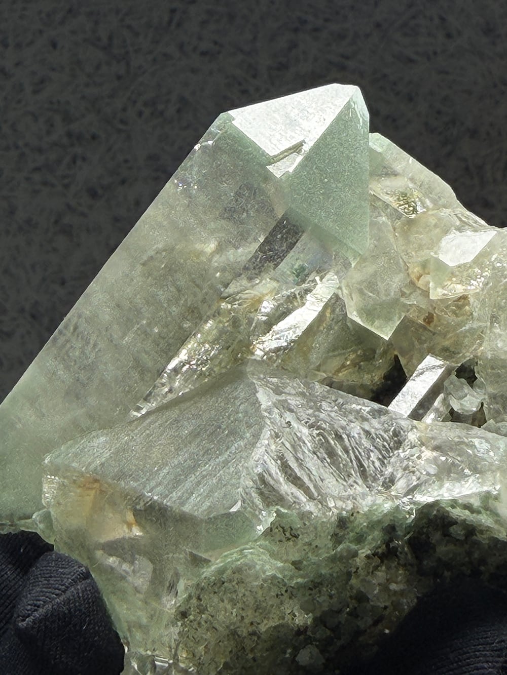 インドのガルサ渓谷、標高5400mのクル地方の奥にあるマニハール。産出されるヒマラヤ水晶は、水晶の中でもトップクラスの品質とされており、透明度と光沢が特に美しいことでも知られます。特徴として共生しているクローライト(緑泥石)は、このマニハールではモスグリーンの色をしており、透明度と相まってより美しさを増しています。2022年頃にマニハールでの採掘が政府の厳しい監視下に置かれるようになり、流通量が激減しているそうです。価格の高騰も続いており、採掘が再開されるかも不明で、今後は入手困難になる可能性も高くなっております。