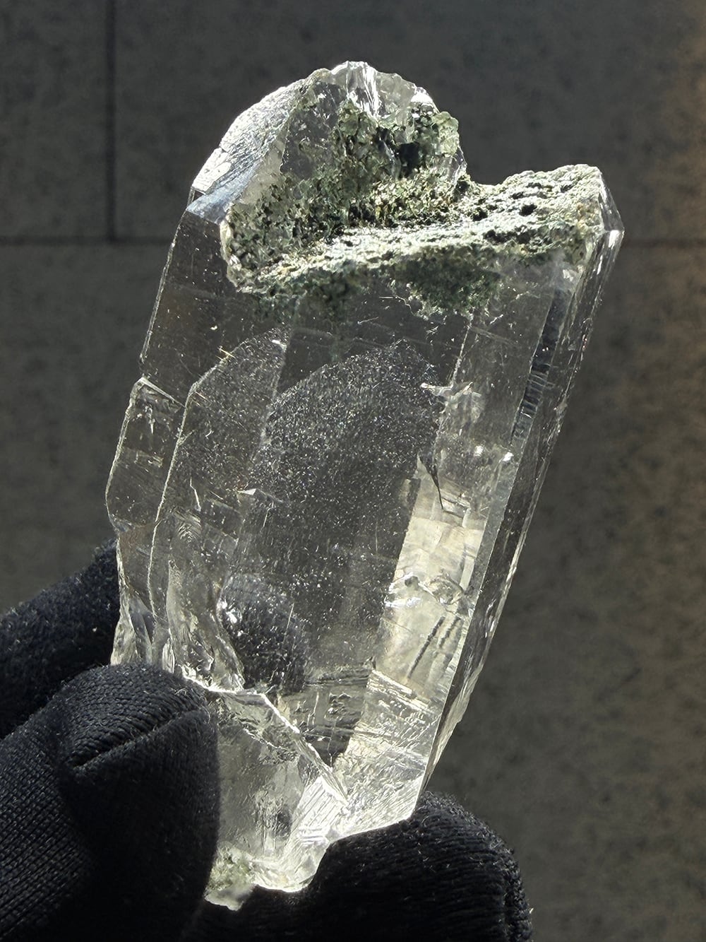 インドのガルサ渓谷、標高5400mのクル地方の奥にあるマニハール。産出されるヒマラヤ水晶は、水晶の中でもトップクラスの品質とされており、透明度と光沢が特に美しいことでも知られます。特徴として共生しているクローライト(緑泥石)は、このマニハールではモスグリーンの色をしており、透明度と相まってより美しさを増しています。2022年頃にマニハールでの採掘が政府の厳しい監視下に置かれるようになり、流通量が激減しているそうです。価格の高騰も続いており、採掘が再開されるかも不明で、今後は入手困難になる可能性も高くなっております。