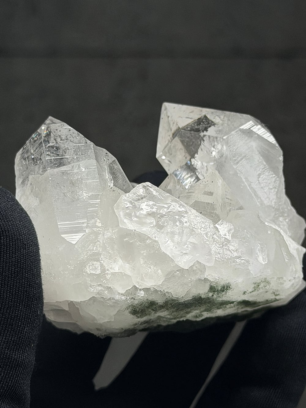 インドのガルサ渓谷、標高5400mのクル地方の奥にあるマニハール。産出されるヒマラヤ水晶は、水晶の中でもトップクラスの品質とされており、透明度と光沢が特に美しいことでも知られます。特徴として共生しているクローライト(緑泥石)は、このマニハールではモスグリーンの色をしており、透明度と相まってより美しさを増しています。2022年頃にマニハールでの採掘が政府の厳しい監視下に置かれるようになり、流通量が激減しているそうです。価格の高騰も続いており、採掘が再開されるかも不明で、今後は入手困難になる可能性も高くなっております。