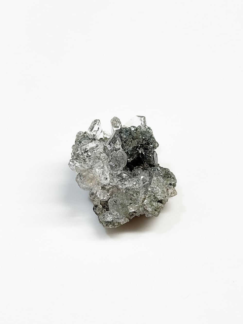 インドのガルサ渓谷、標高5400mのクル地方の奥にあるマニハール。産出されるヒマラヤ水晶は、水晶の中でもトップクラスの品質とされており、透明度と光沢が特に美しいことでも知られます。特徴として共生しているクローライト(緑泥石)は、このマニハールではモスグリーンの色をしており、透明度と相まってより美しさを増しています。2022年頃にマニハールでの採掘が政府の厳しい監視下に置かれるようになり、流通量が激減しているそうです。価格の高騰も続いており、採掘が再開されるかも不明で、今後は入手困難になる可能性も高くなっております。