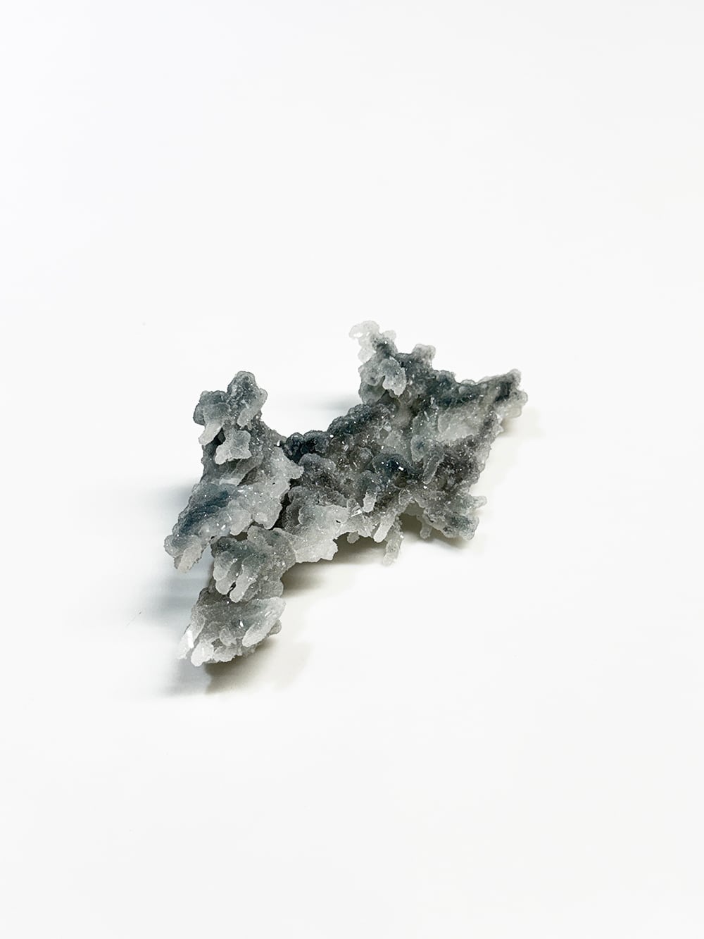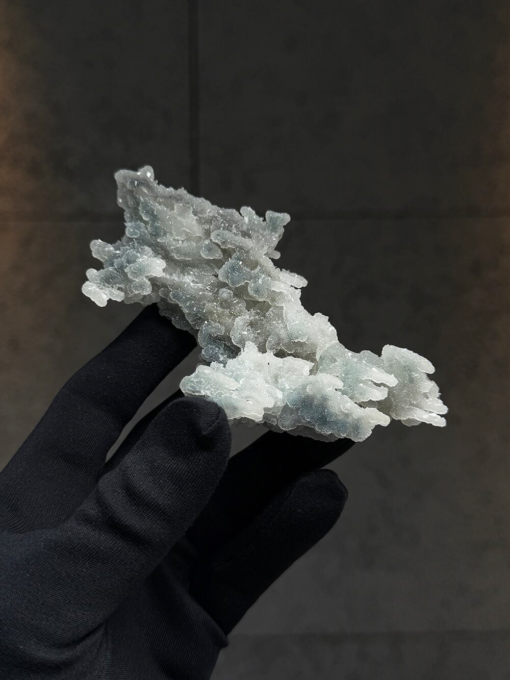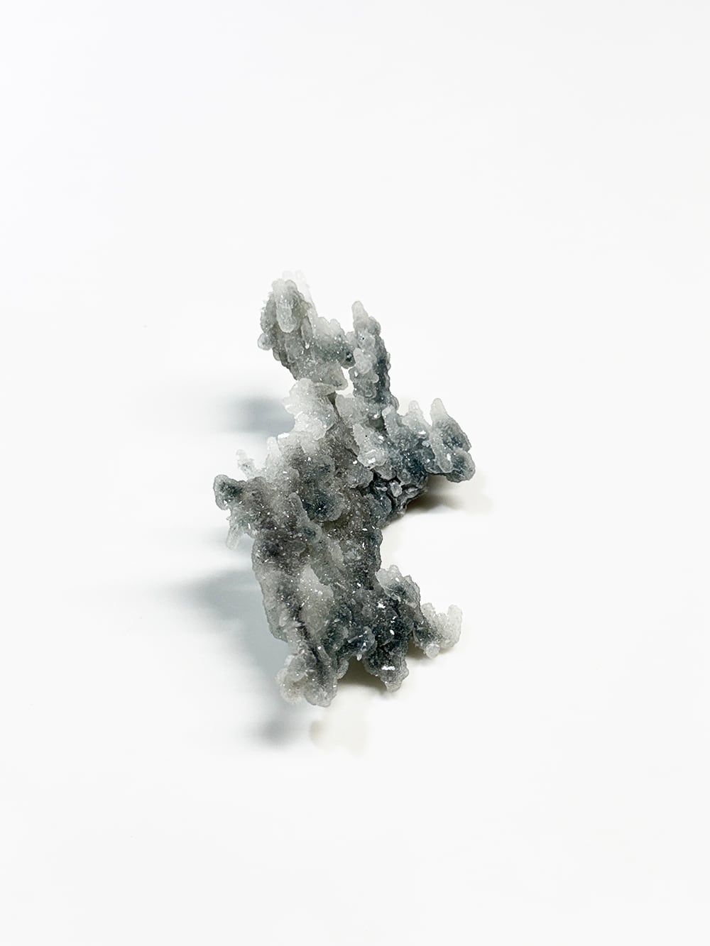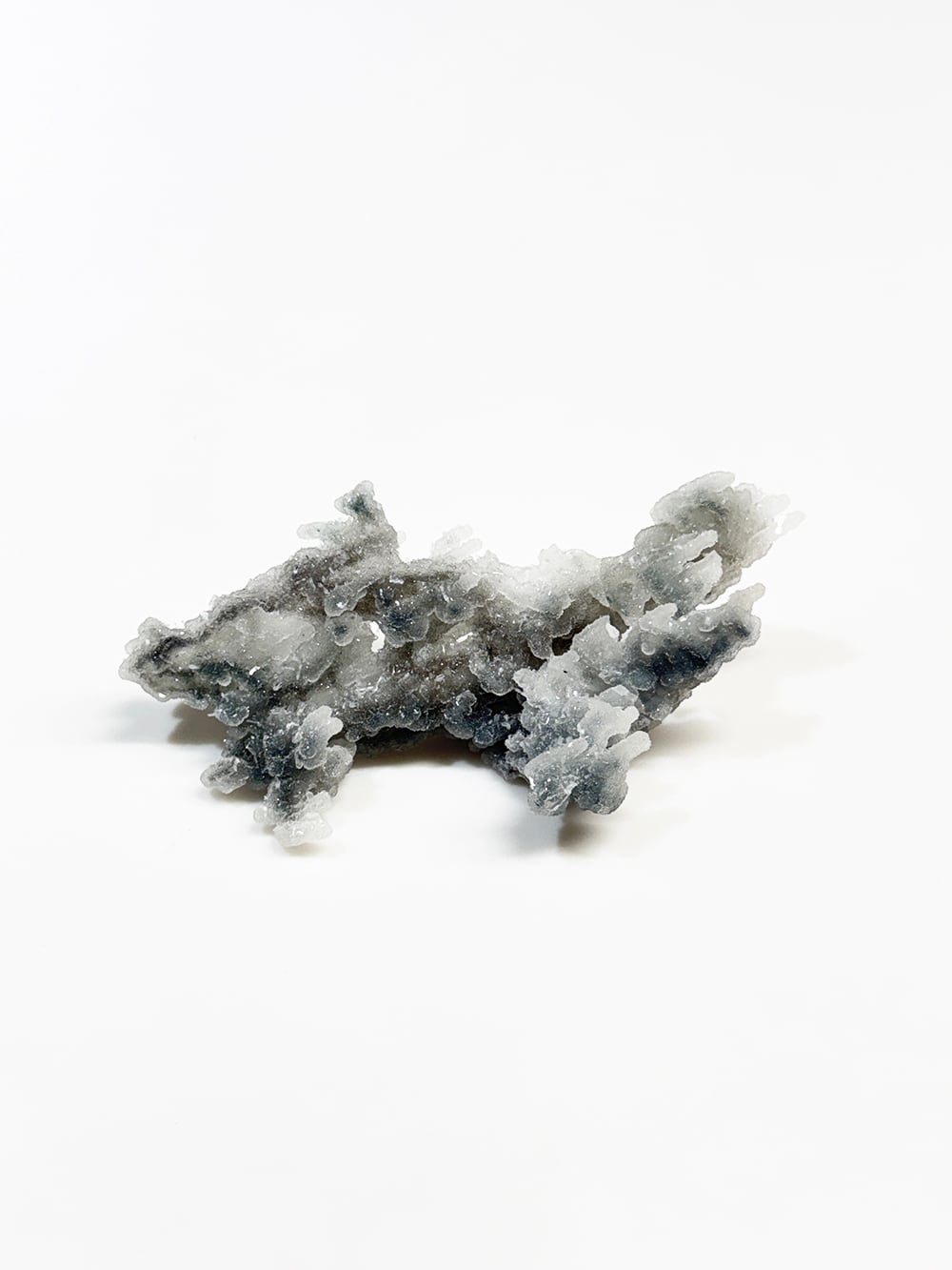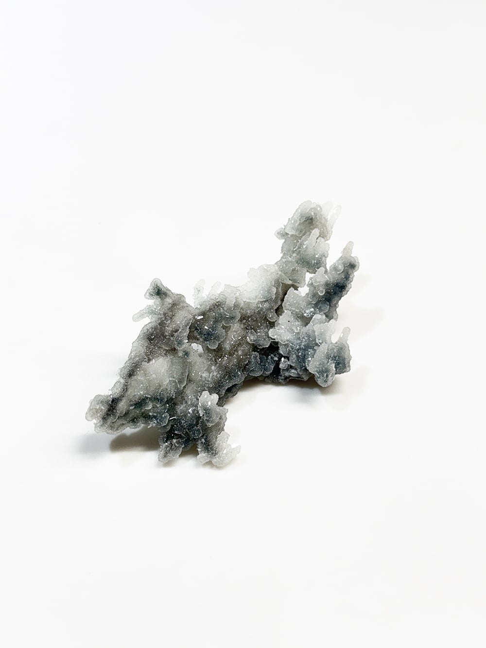 珊瑚状に成長したブルーカルセドニー。微細な石英の集合による立体構造と、淡く透ける色調が特徴的な個体です。自然が生み出した有機的な形状を楽しめます。カルセドニー コーラルは、微細な石英(カルセドニー)が集合し、珊瑚(コーラル)のような有機的な形状を形成した鉱物です。人工的な造形では再現できない、自然由来の有機的フォルムと静かな存在感。鉱物標本としてはもちろん、オブジェとして空間に置いても成立する個体です。