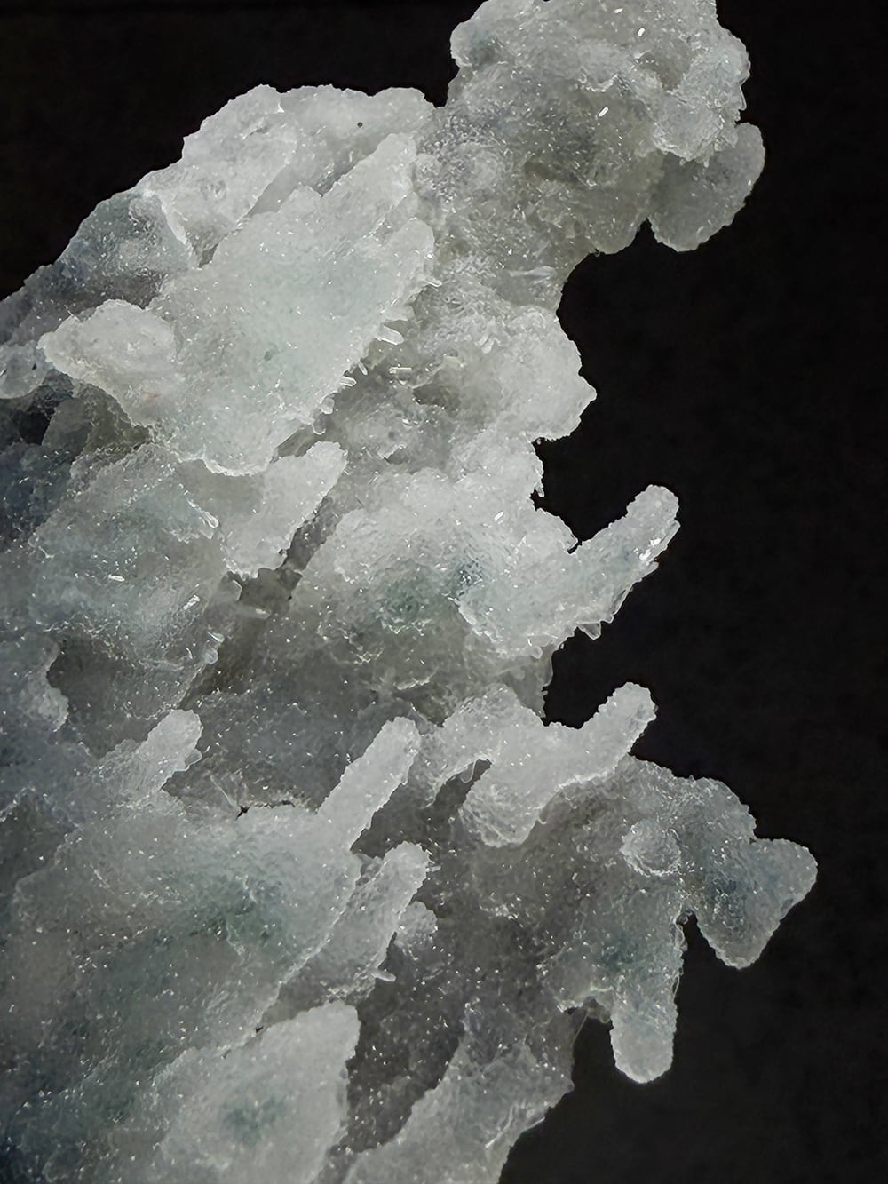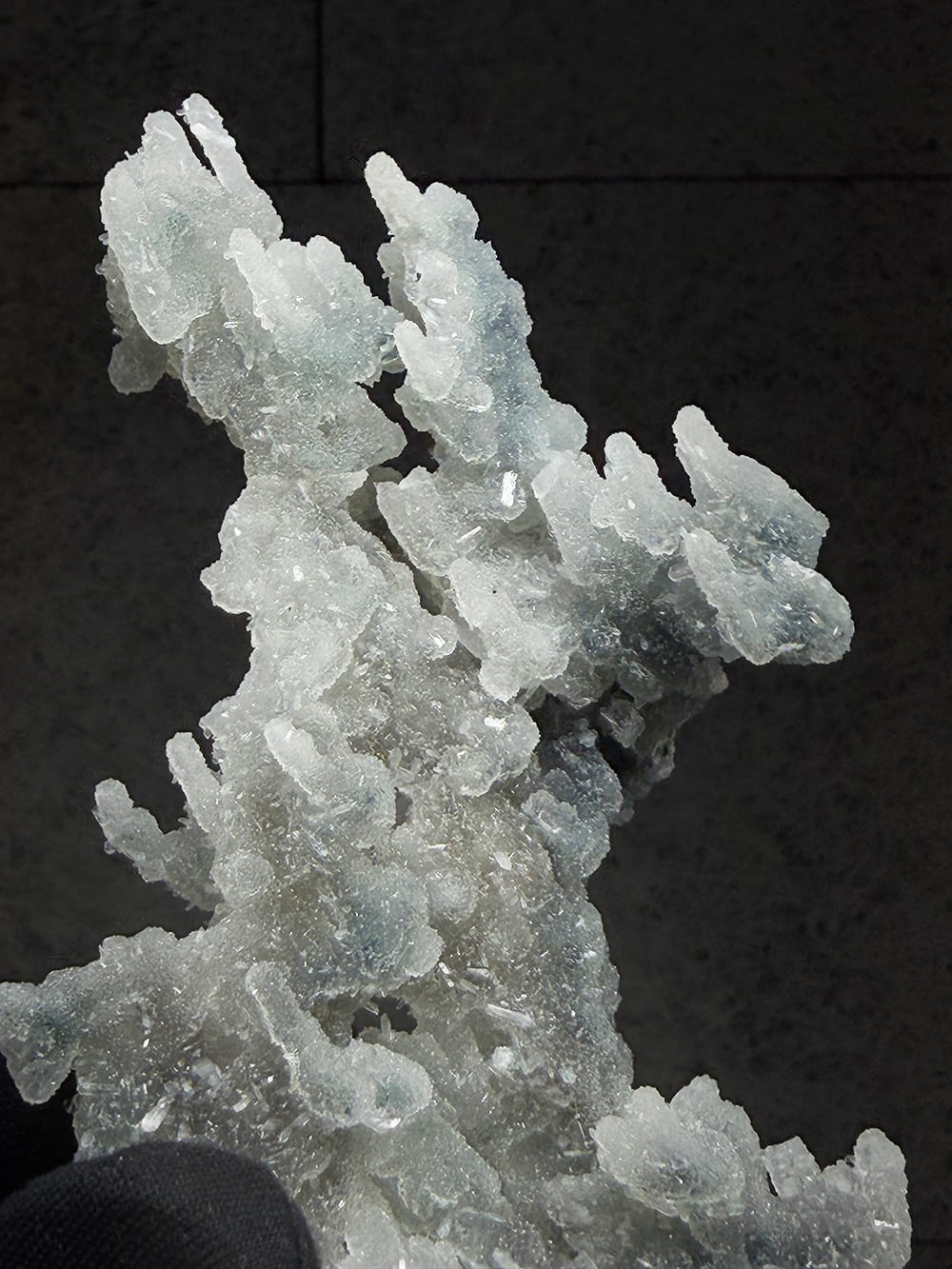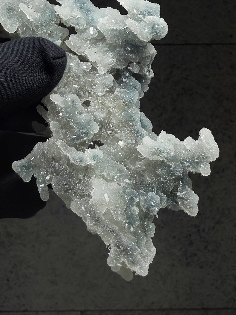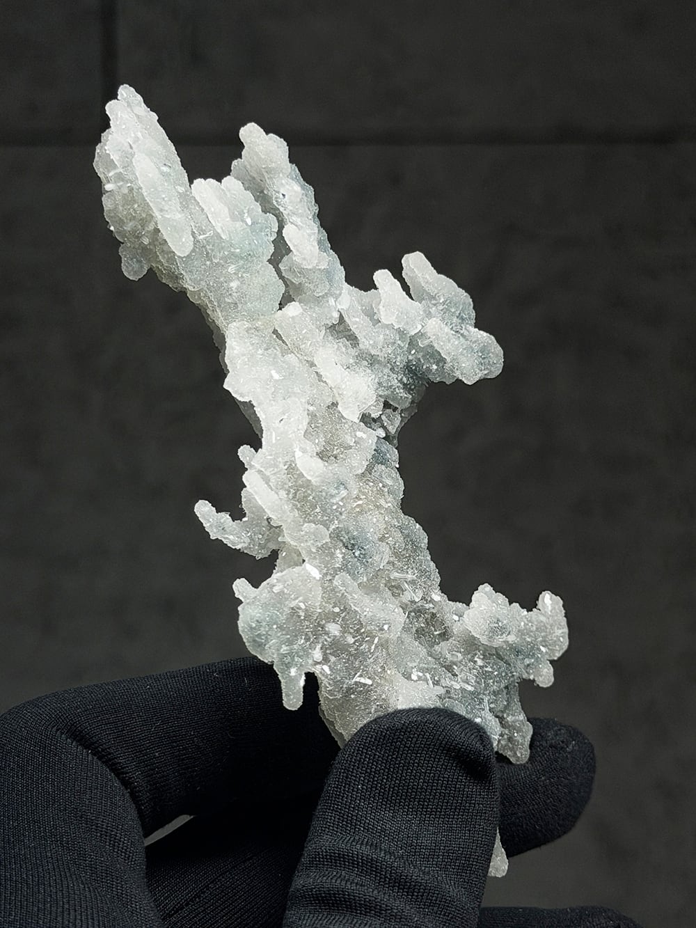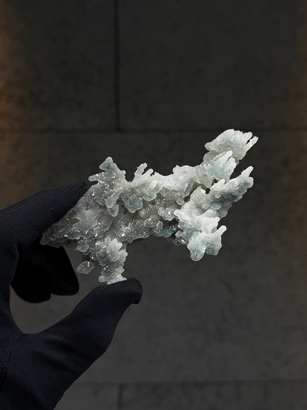 珊瑚状に成長したブルーカルセドニー。微細な石英の集合による立体構造と、淡く透ける色調が特徴的な個体です。自然が生み出した有機的な形状を楽しめます。カルセドニー コーラルは、微細な石英(カルセドニー)が集合し、珊瑚(コーラル)のような有機的な形状を形成した鉱物です。人工的な造形では再現できない、自然由来の有機的フォルムと静かな存在感。鉱物標本としてはもちろん、オブジェとして空間に置いても成立する個体です。