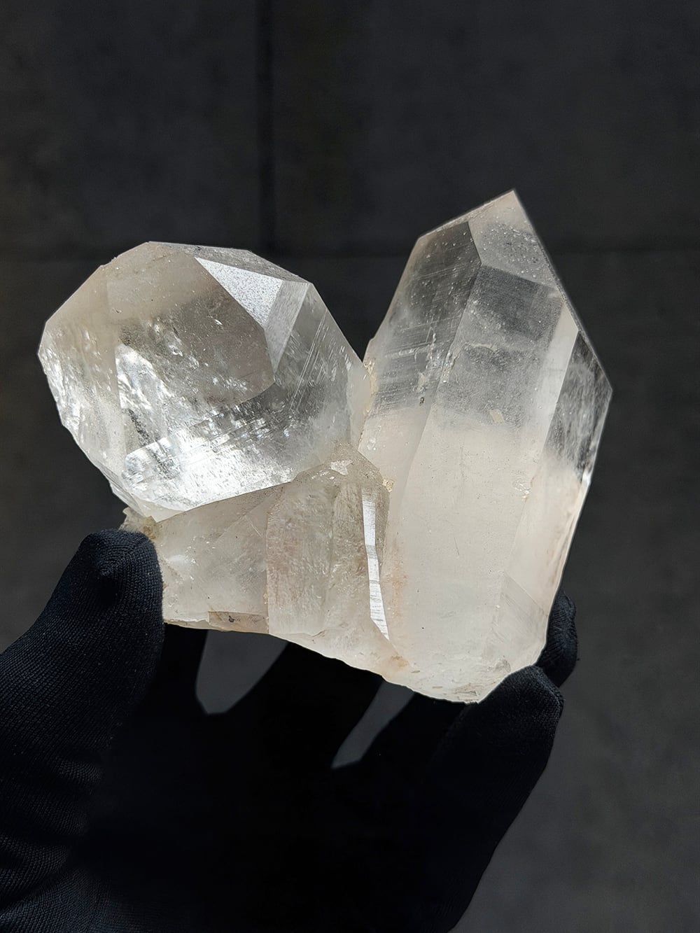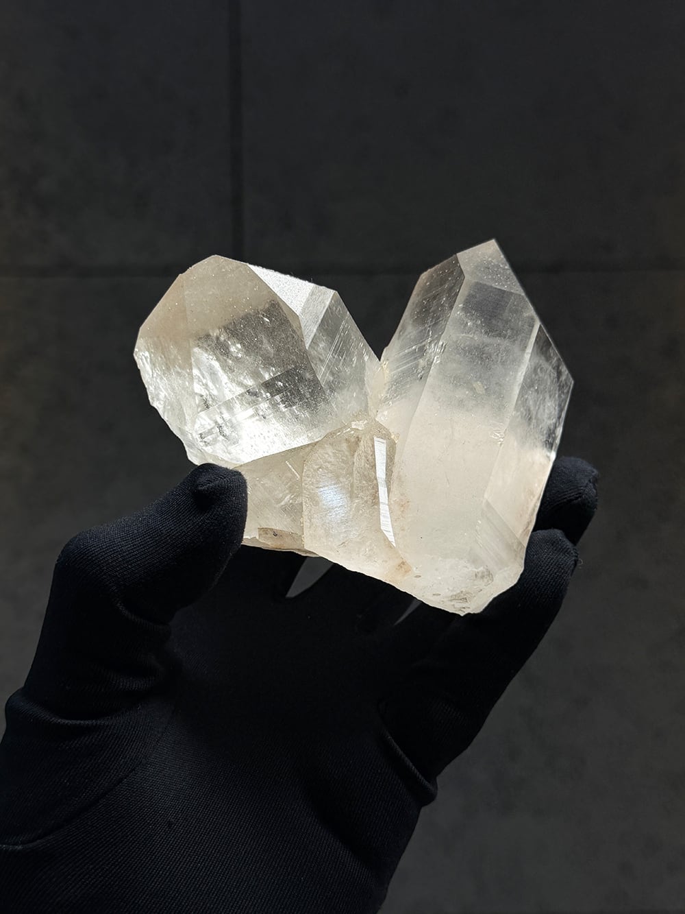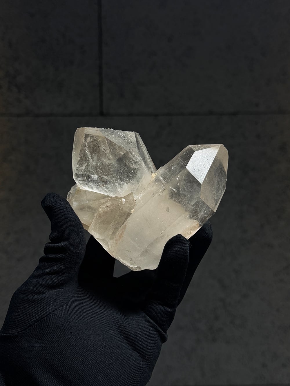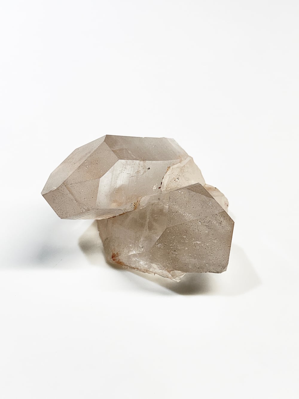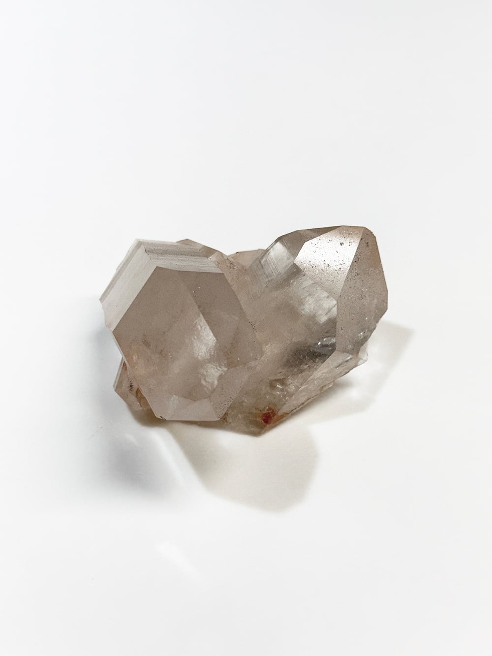 見る角度によってハート型に見えるマニカランのクォーツクラスター。マニカランの特徴である淡いピンクカラーが美しく、照りの良い面とマットな面とのコントラストも良い表情を作っています。それなりのボリューム感がありますが、安定して置くことができるのでインテリアとしても飾りやすい一点。