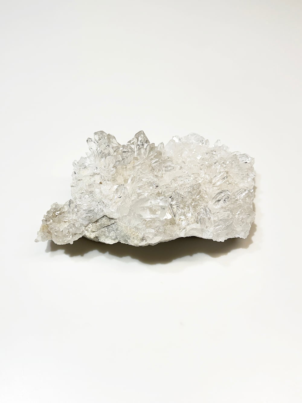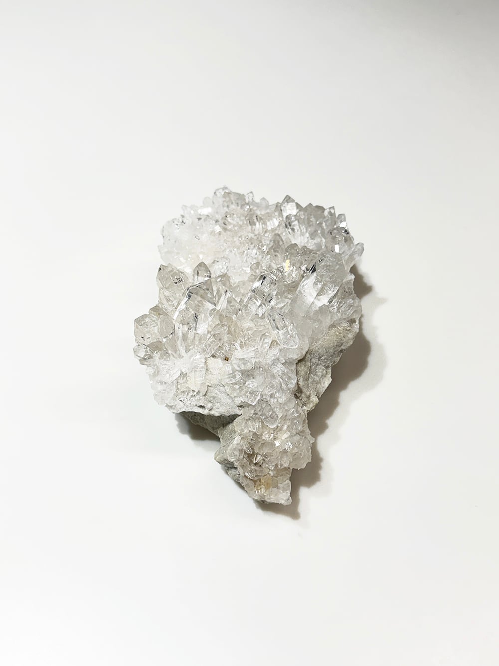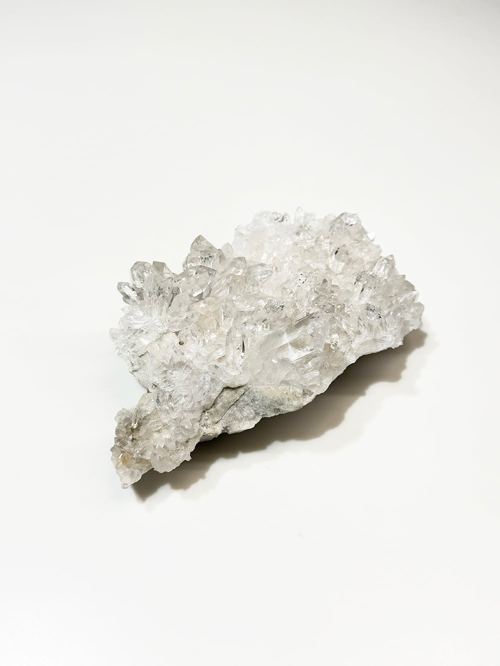 美しい透明感とボリューム感があるクォーツクラスター。ライトグレーの母岩との相性も良くモダンな雰囲気を纏っています。置いたときの座りもよく、飾りやすく絵になるクォーツクラスターです。