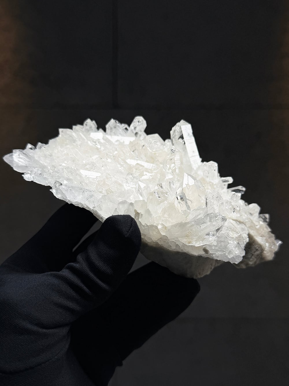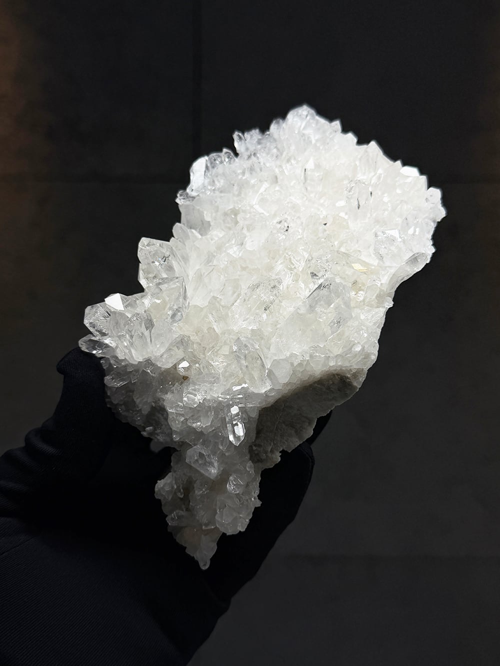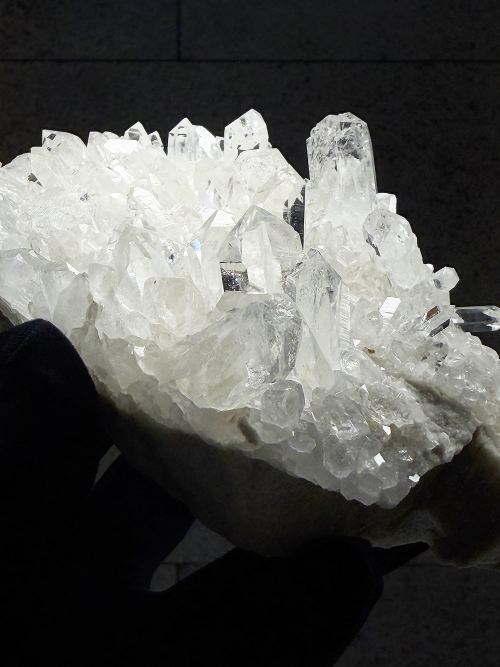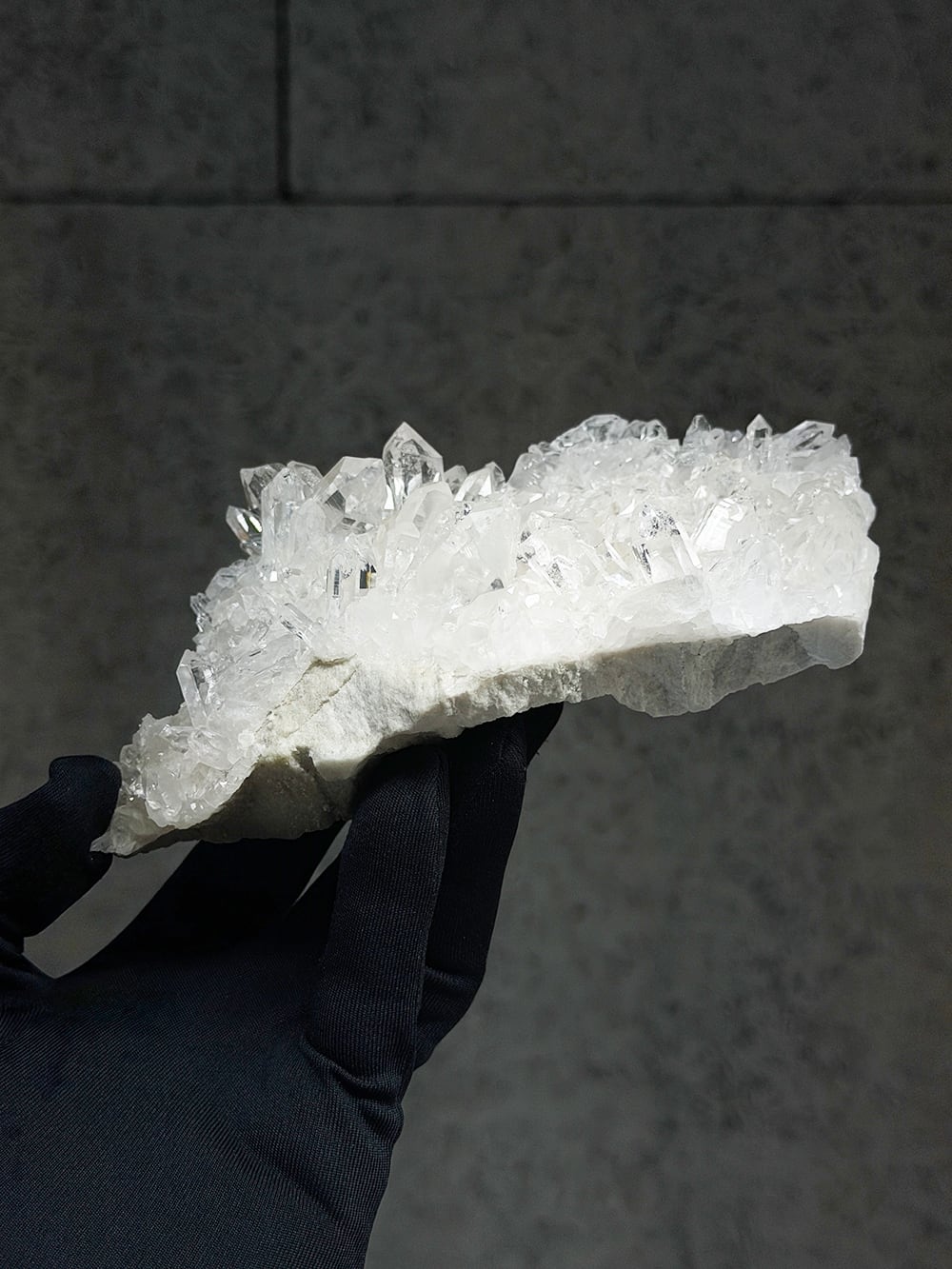 美しい透明感とボリューム感があるクォーツクラスター。ライトグレーの母岩との相性も良くモダンな雰囲気を纏っています。置いたときの座りもよく、飾りやすく絵になるクォーツクラスターです。