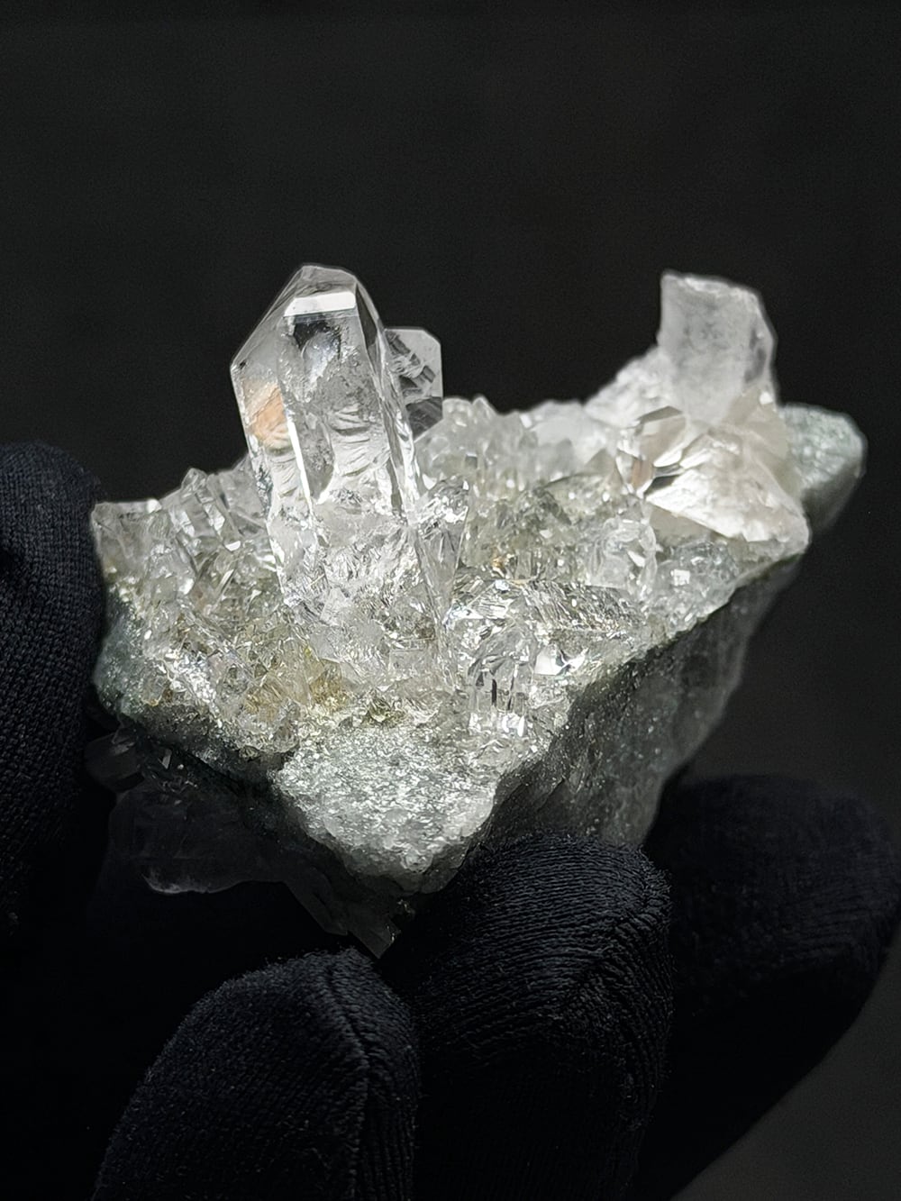 インドのガルサ渓谷、標高5400mのクル地方の奥にあるマニハール。産出されるヒマラヤ水晶は、水晶の中でもトップクラスの品質とされており、透明度と光沢が特に美しいことでも知られます。特徴として共生しているクローライト(緑泥石)は、このマニハールではモスグリーンの色をしており、透明度と相まってより美しさを増しています。2022年頃にマニハールでの採掘が政府の厳しい監視下に置かれるようになり、流通量が激減しているそうです。価格の高騰も続いており、採掘が再開されるかも不明で、今後は入手困難になる可能性も高くなっております。
